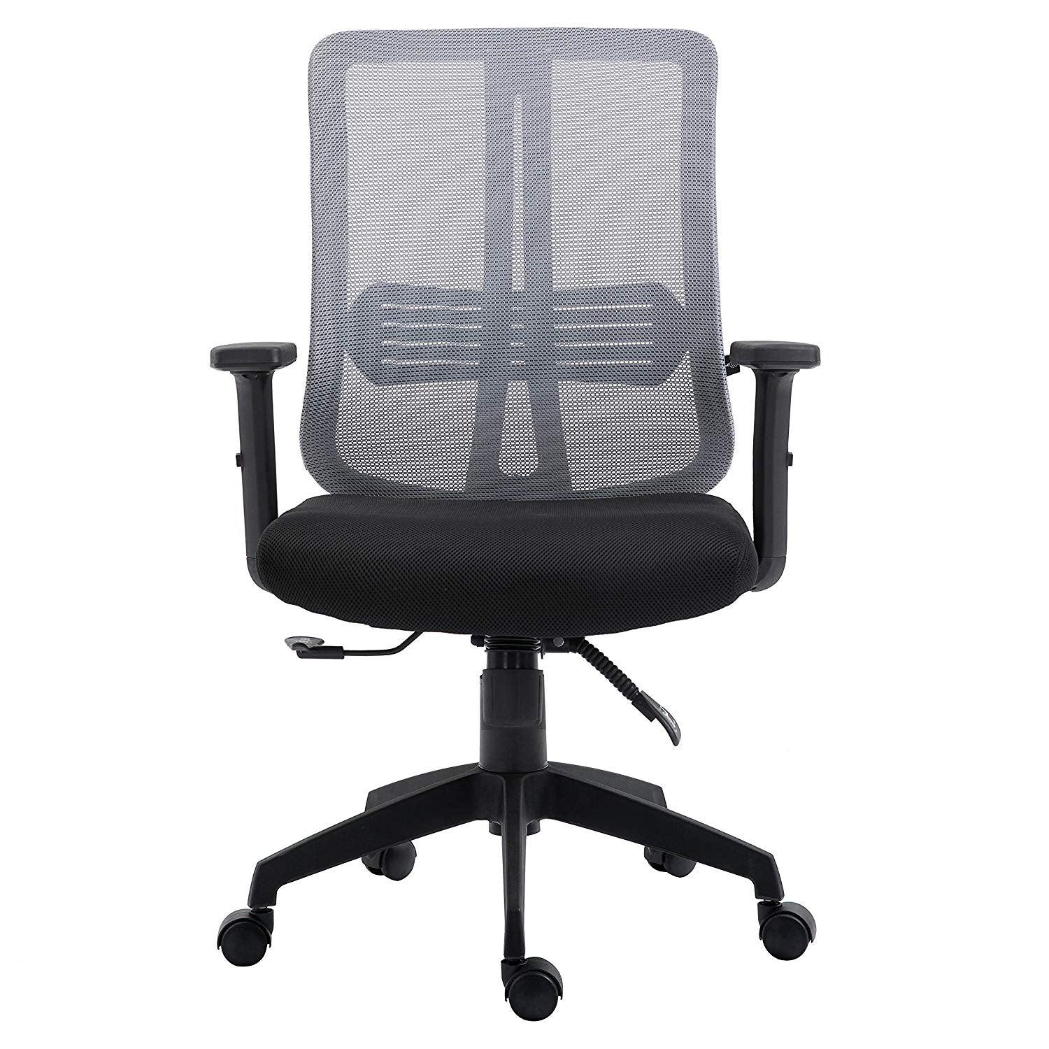 Chaise de bureau pivotante à dossier moyen en maille grise avec inclinaison synchronisée et accoudoirs réglables