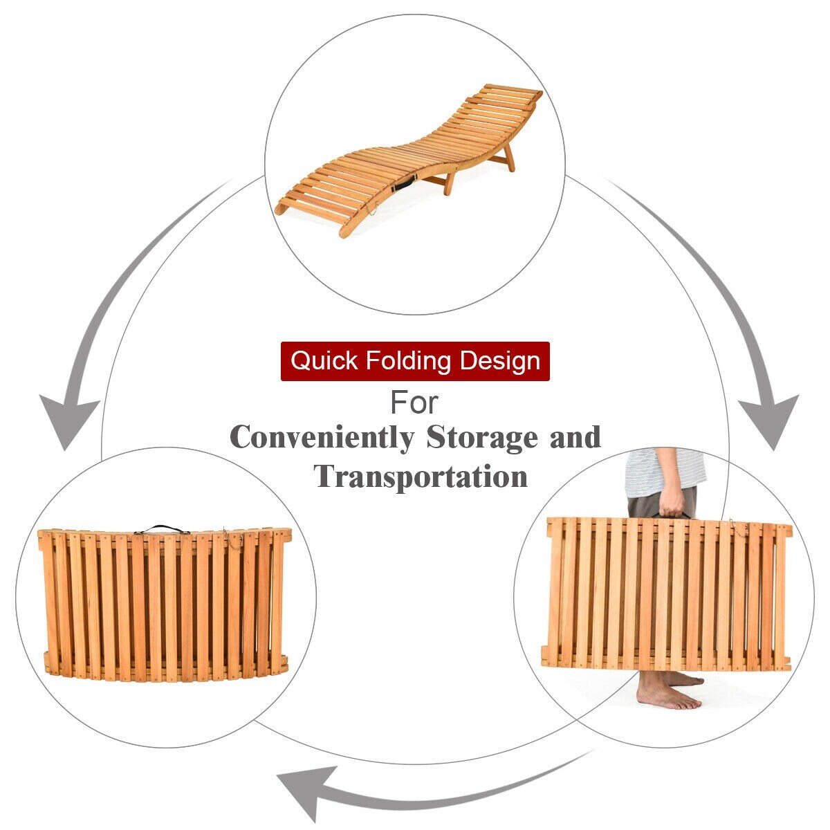 Gymax Lot de 2 chaises longues pliantes d'extérieur en eucalyptus - Voir les détails