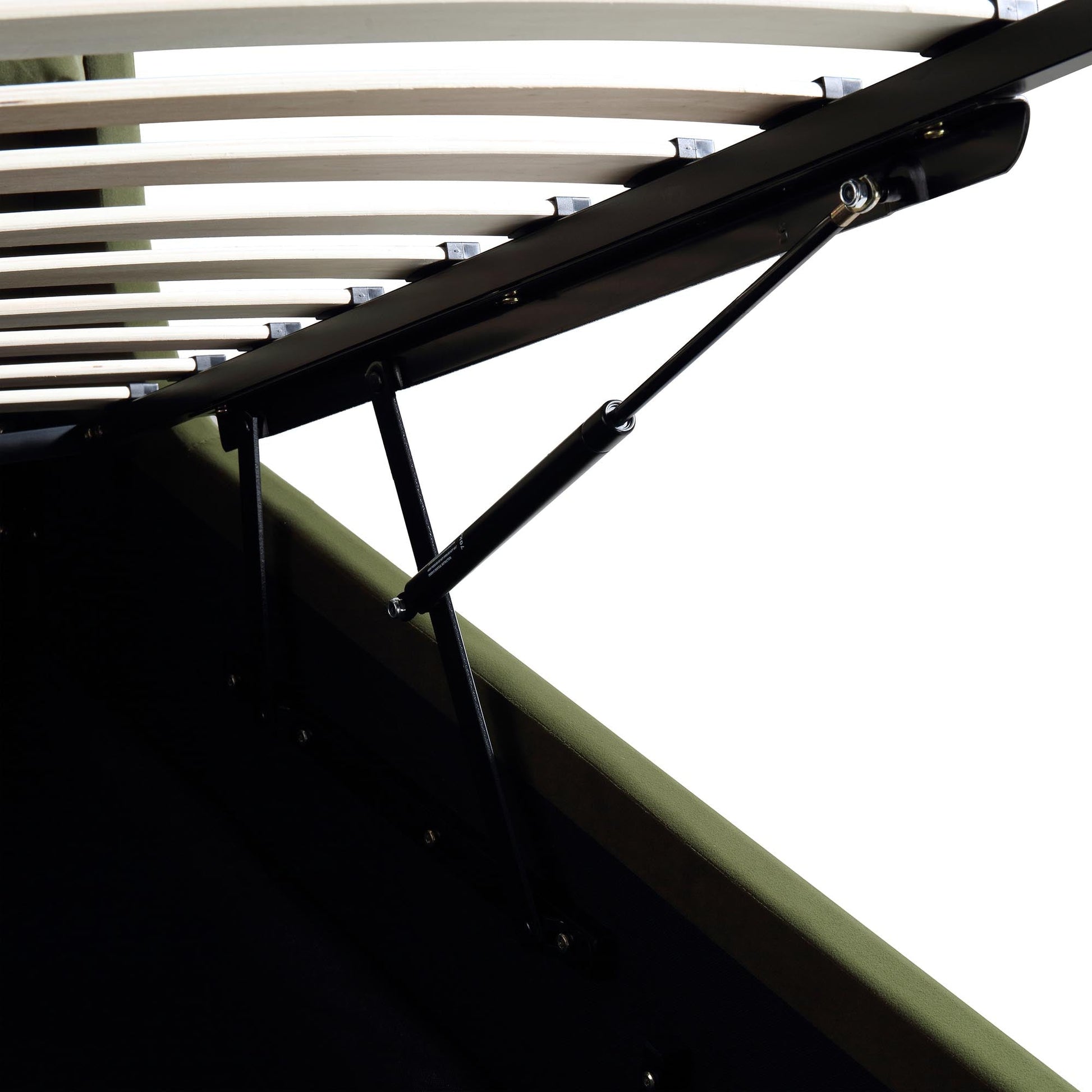 - Recouvert d'un tissu doux au toucher velours de couleur vert mousse, le lit repose sur des pieds d'angle chromés pour un look glamour moderne.