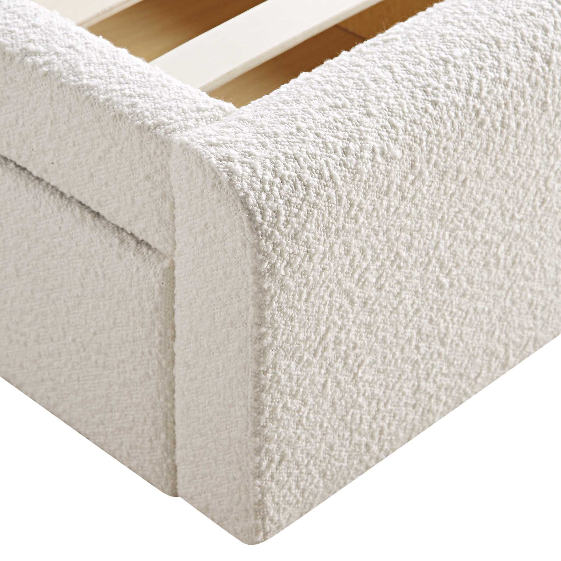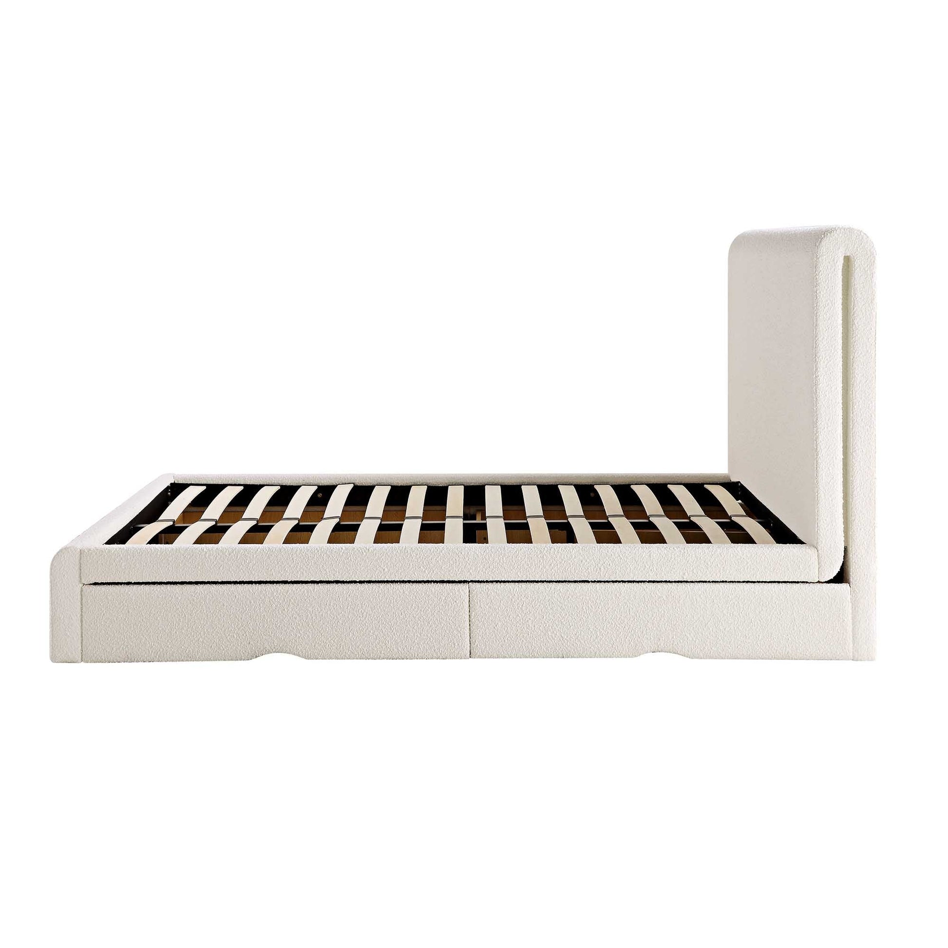 Lit incurvé Hampstead Ecru Boucle avec rangement à 4 tiroirs