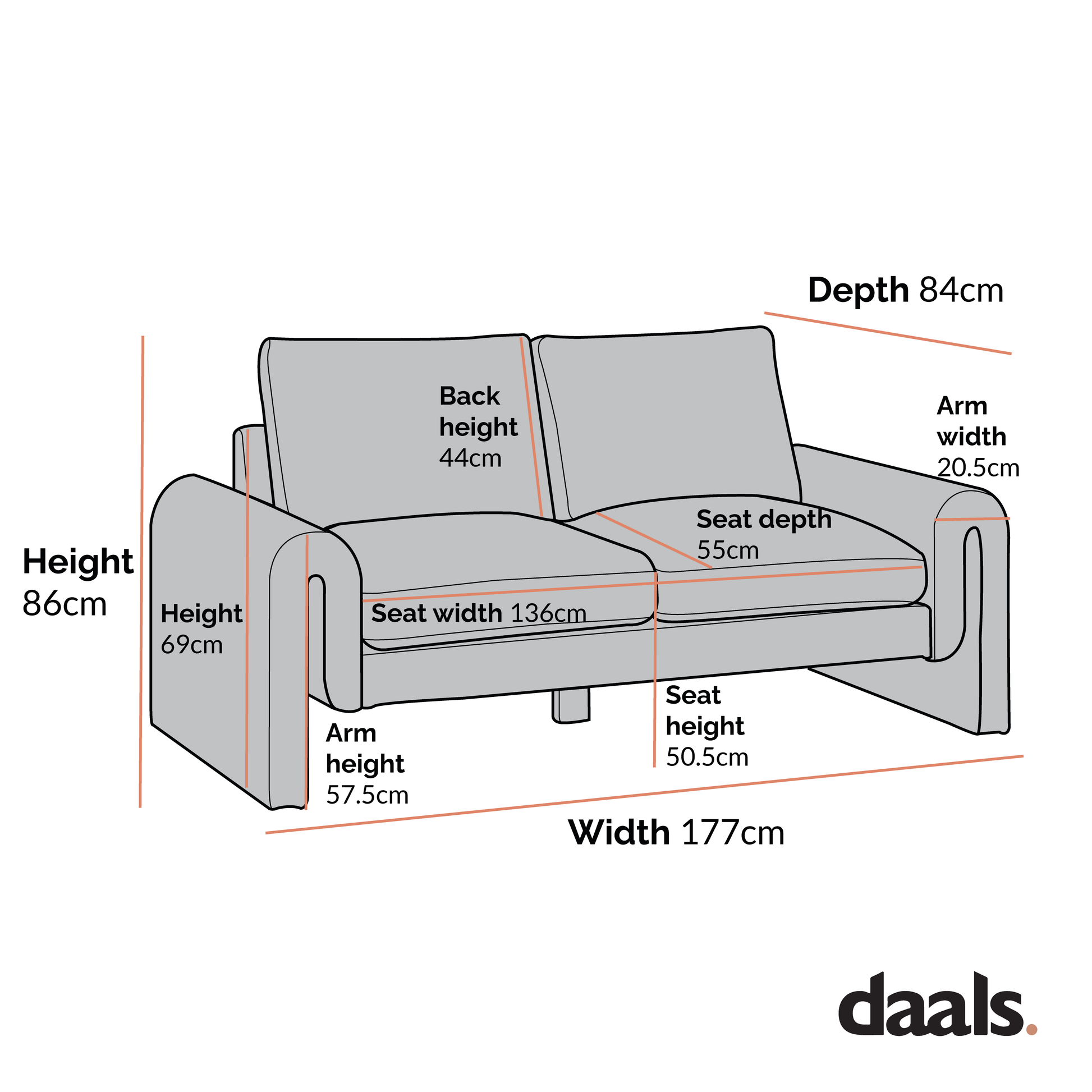 - Dimensions : L 177 x P 84 x H 86 cm. Hauteur d'assise : 50,5 cm.