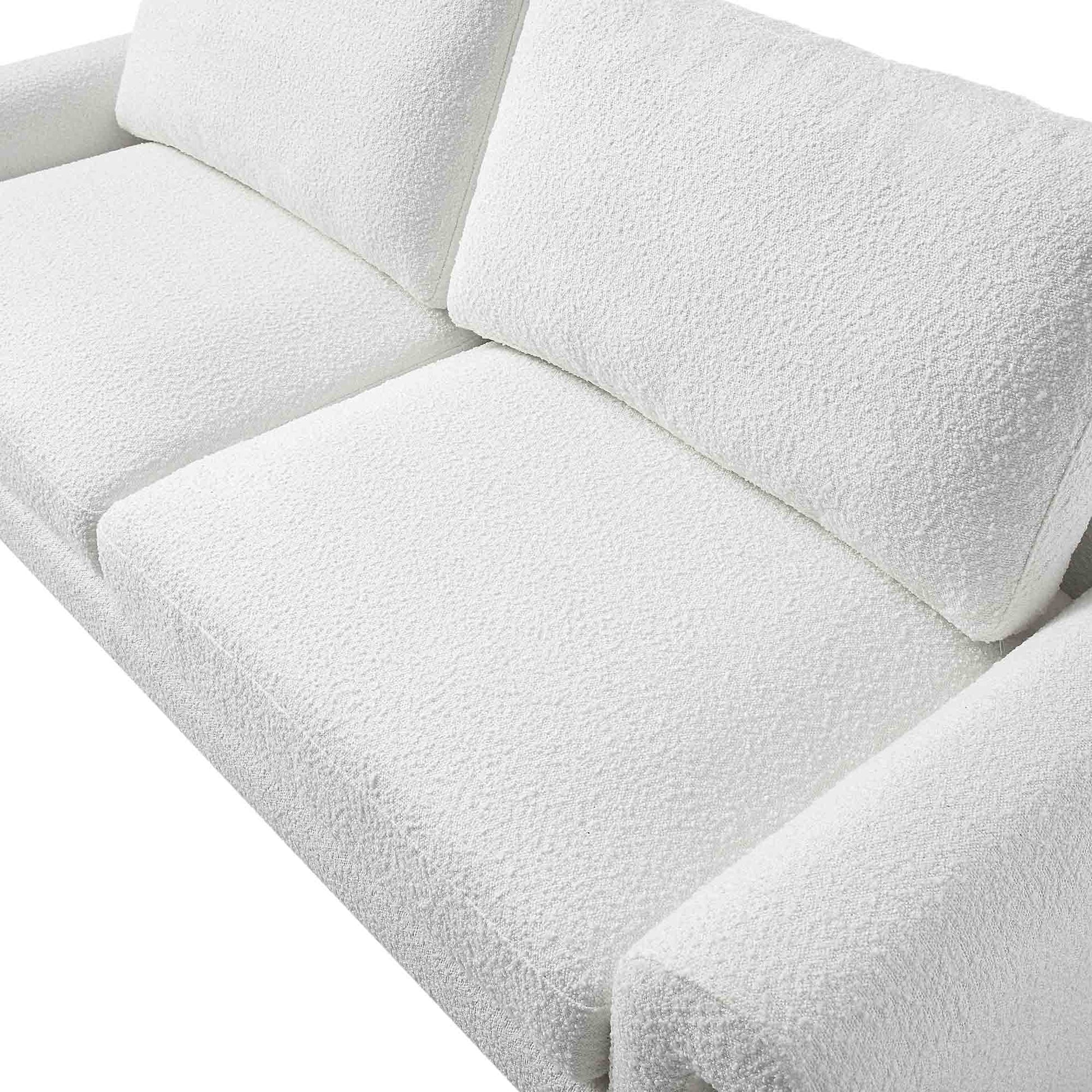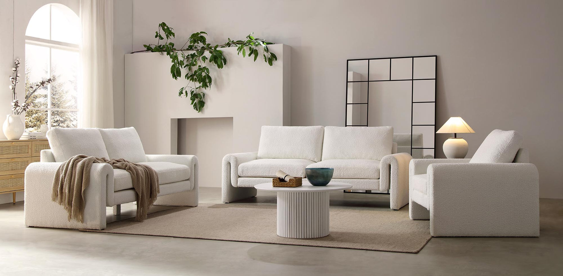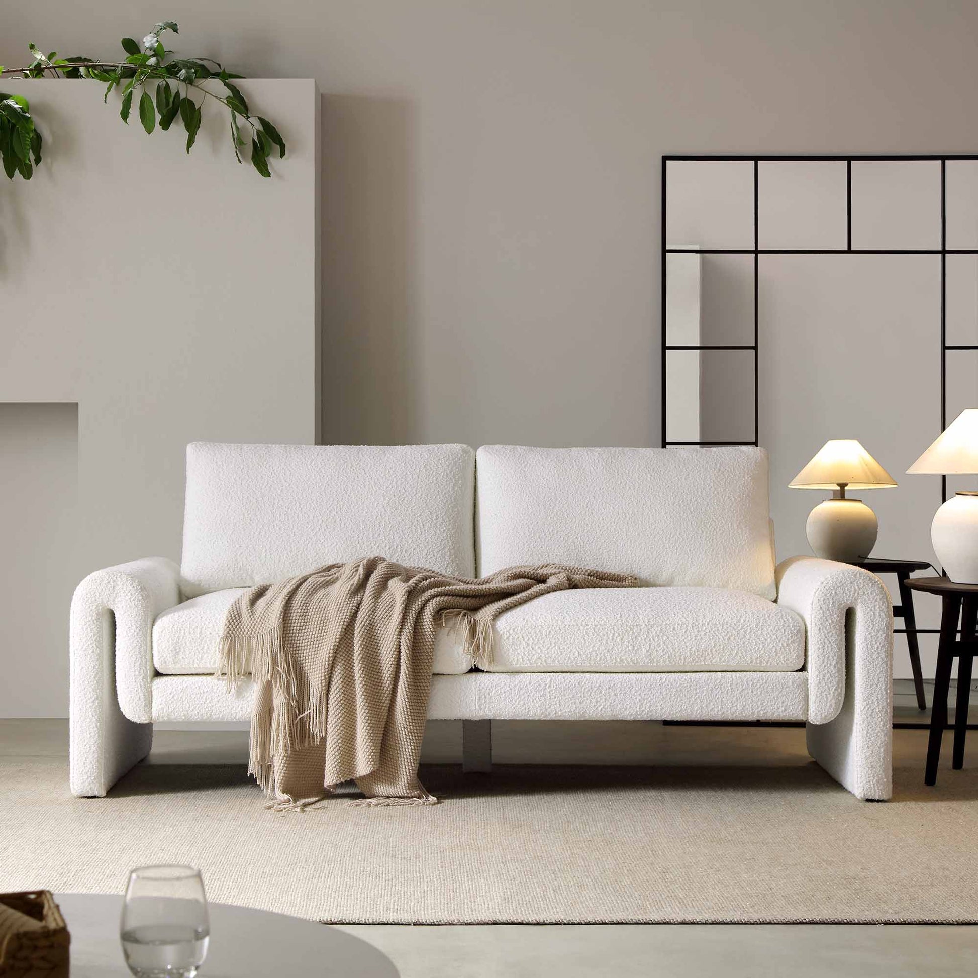 - Complétez le look : sur la photo avec notre canapé 3 places Hampstead White Boucle se trouve notre miroir pleine longueur Herbert en noir