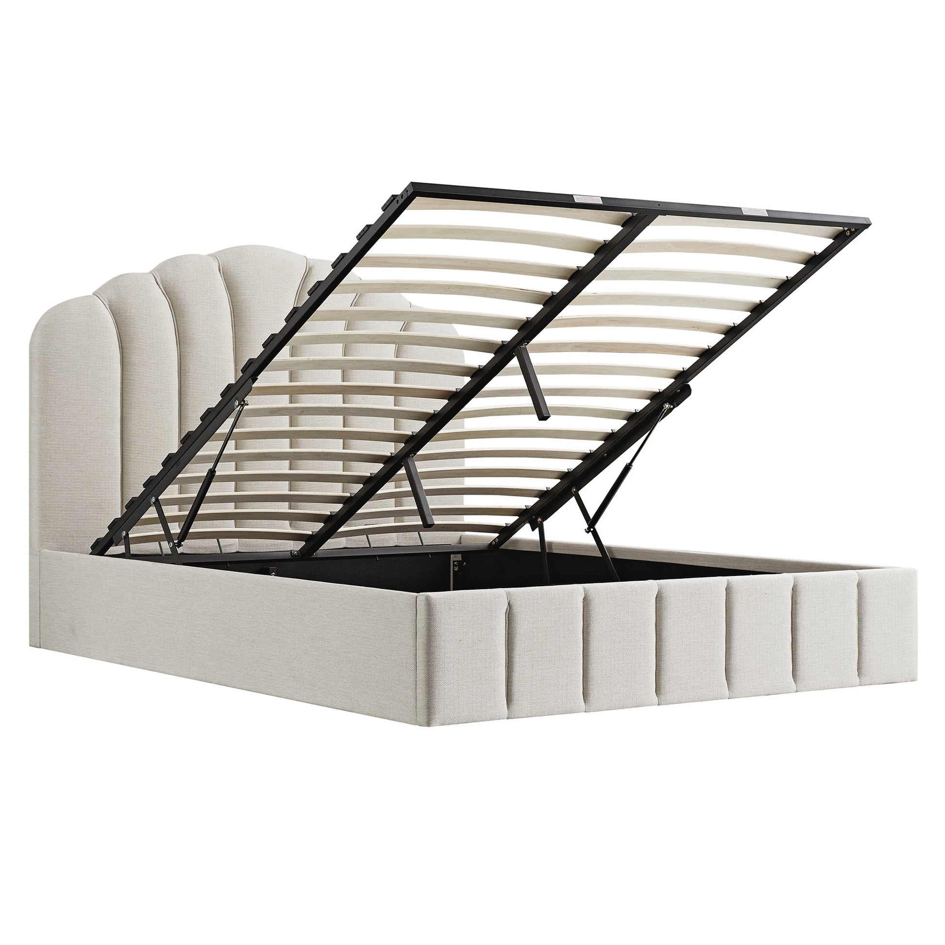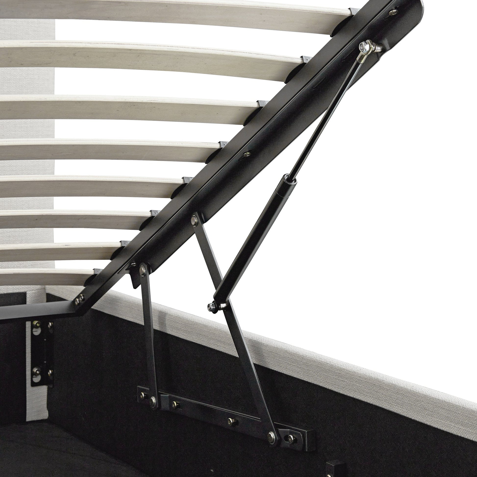 - Sous les lignes épurées, une base ottomane pratique offre un rangement discret, facilement accessible grâce au mécanisme de vérin à gaz à ouverture d'extrémité - idéal pour garder le linge de lit et les essentiels du quotidien soigneusement hors de vue.