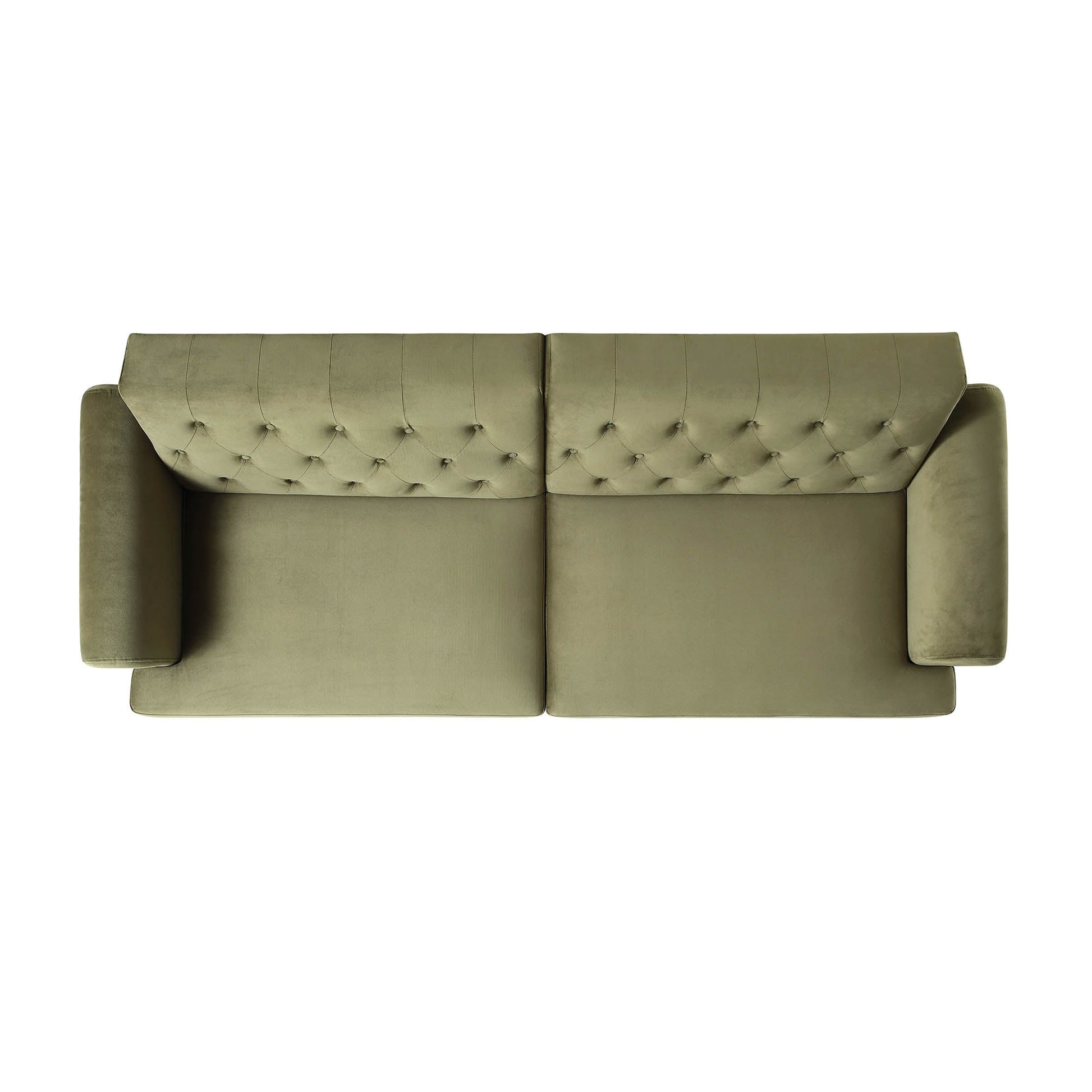 Canapé-lit Chesterfield 3 places Hanney en velours vert mousse