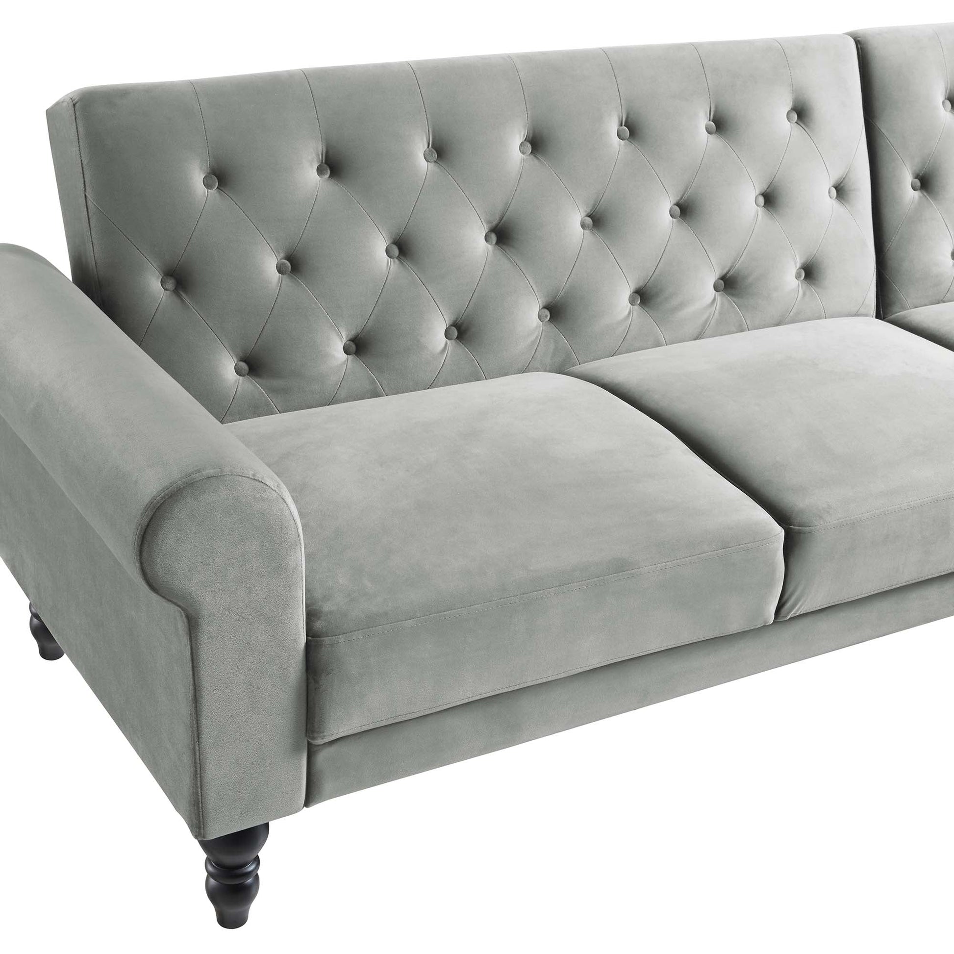 - Inspiré du style traditionnel Chesterfield, notre canapé chaise longue Hanney se transforme en lit en quelques secondes grâce au simple mécanisme clic-clac.