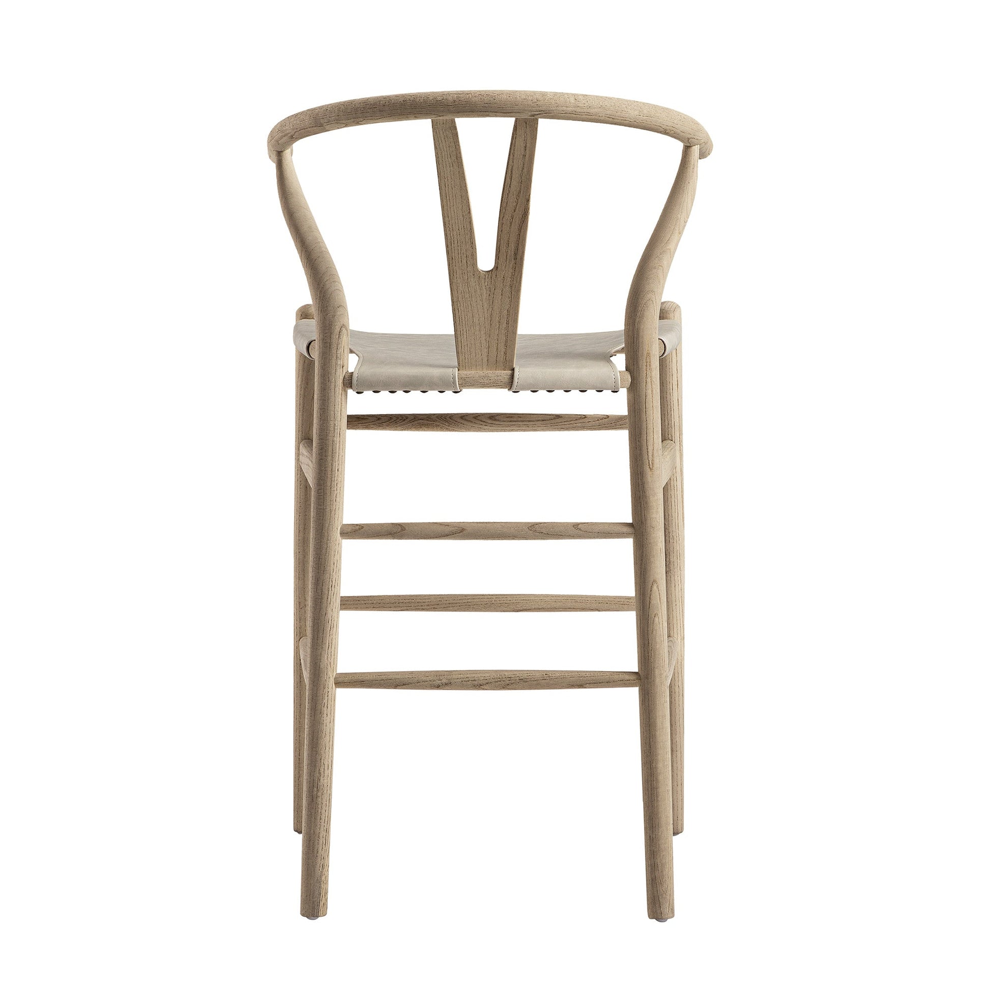 - Dotée d'un dossier en Y, la chaise est solidement fabriquée en orme massif dans une élégante finition patinée, coordonnée au siège en similicuir gris clair.