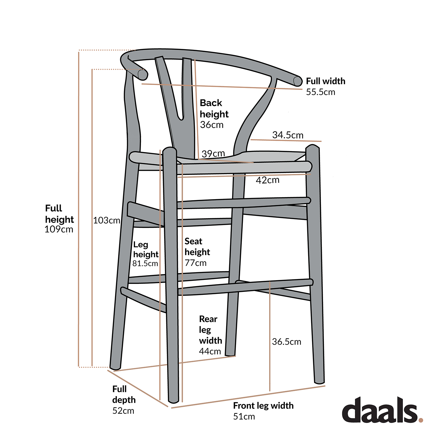 - Dimensions : L 55,5 x P 52 x H 109 cm. Hauteur d'assise : 77 cm.