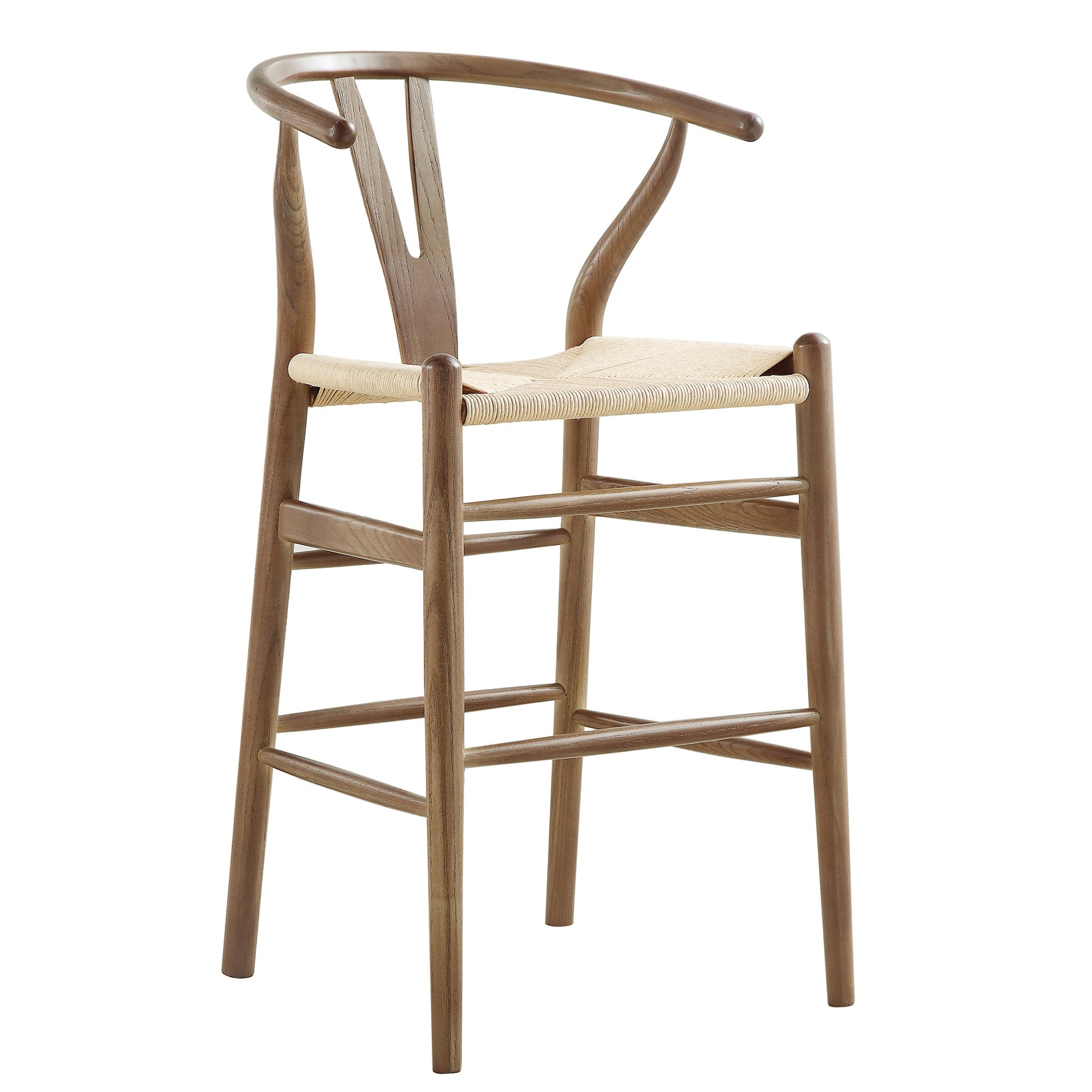 Tabouret de bar Hansel en bois tressé naturel, cadre couleur noyer clair