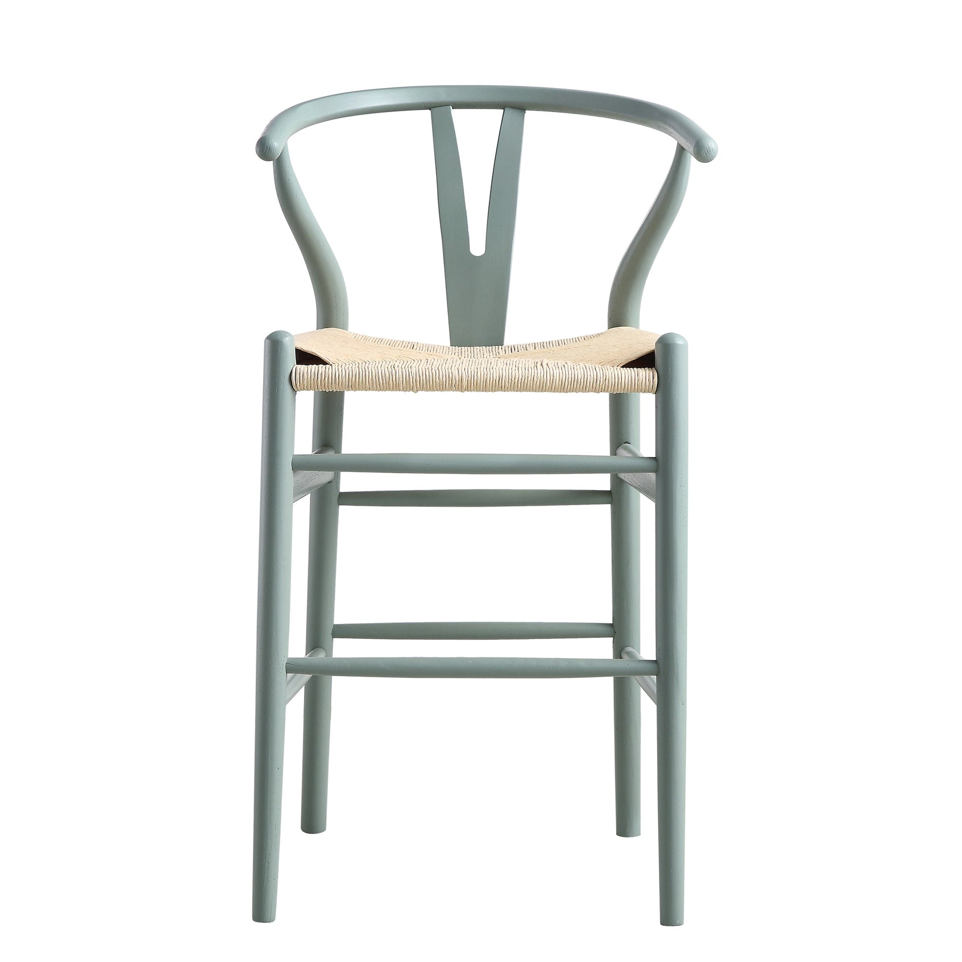 Tabouret de bar Hansel en bois tressé naturel, cadre vert sauge