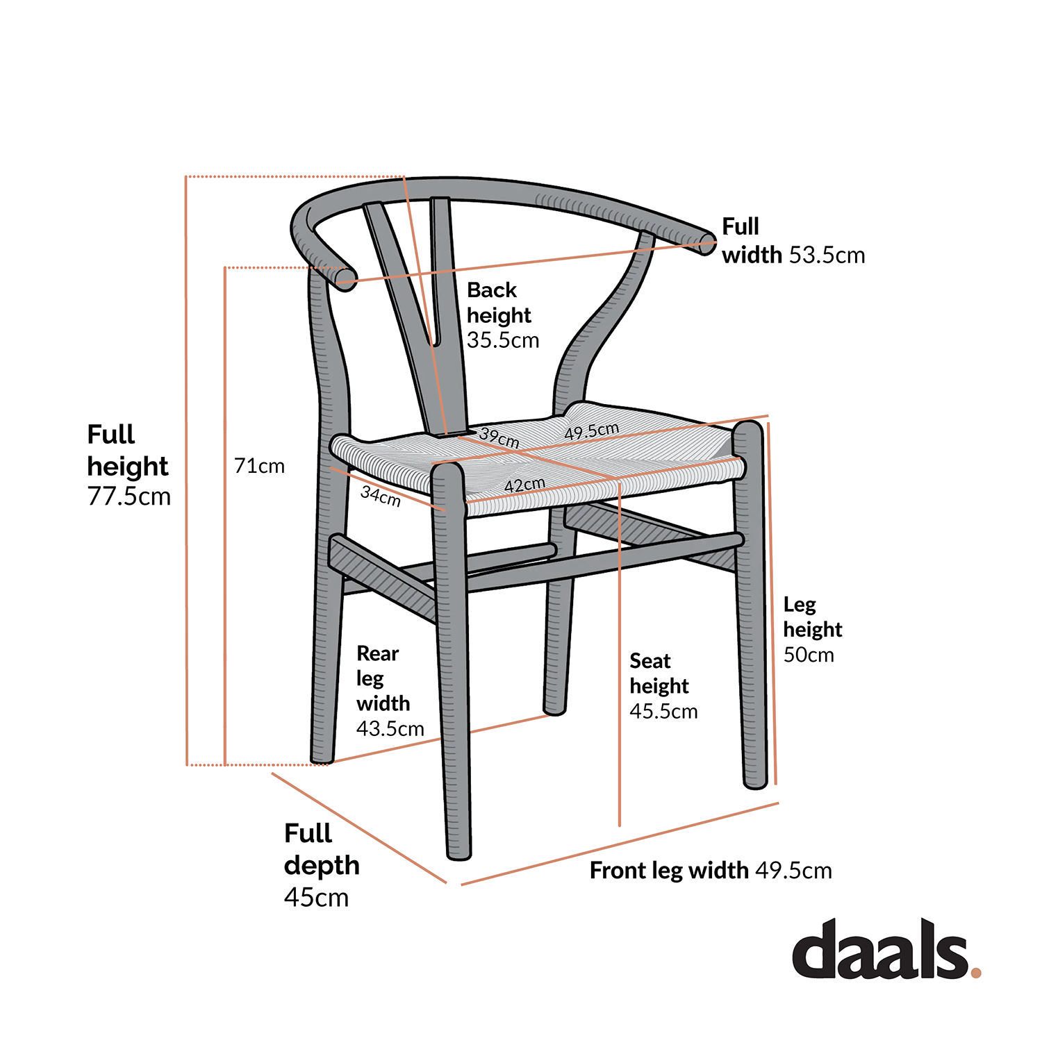 - Dimensions : L 53,5 x P 45 x H 77,5 cm.