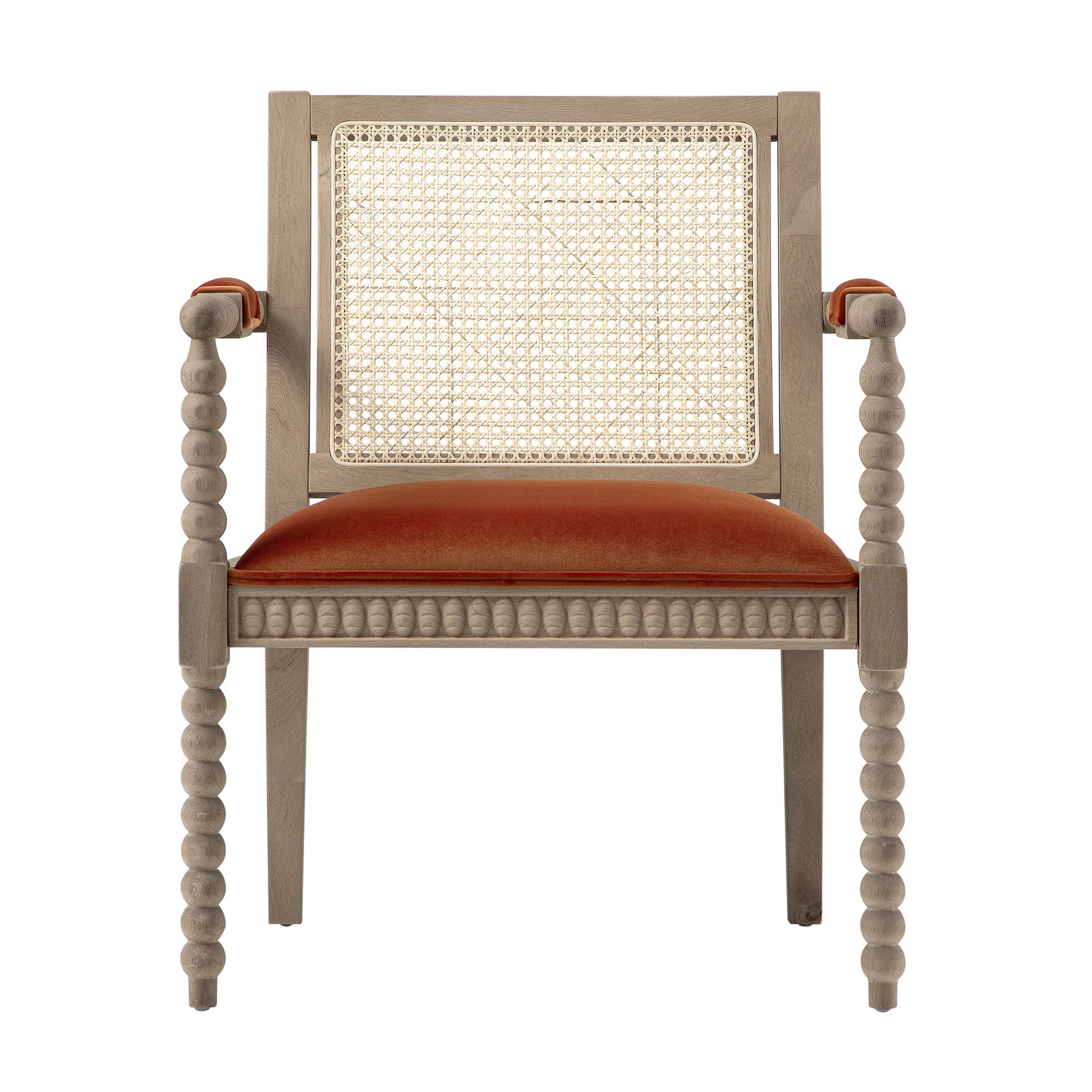 Fauteuil Hemingford en velours rouille et chêne lavé aux bobines