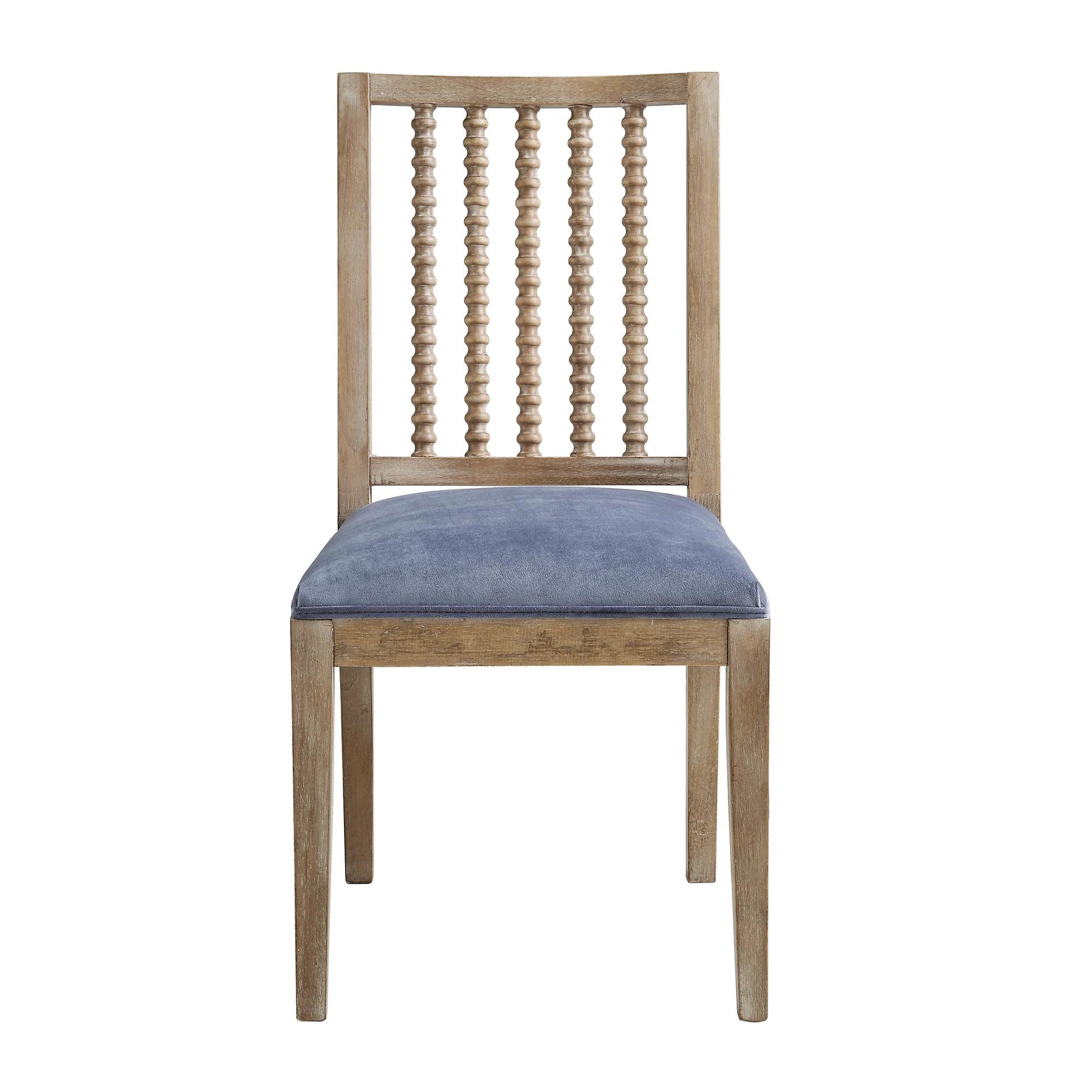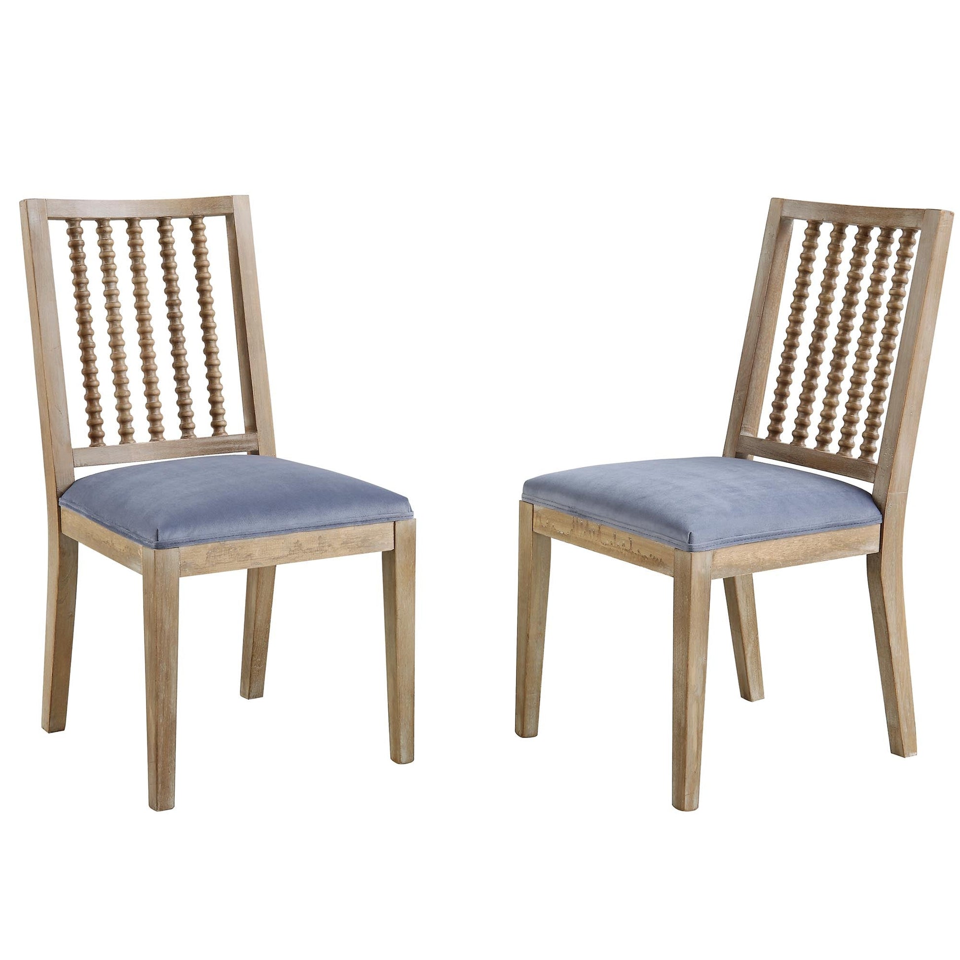 Ensemble de 2 chaises de salle à manger Hemingford en velours bleu gris avec fuseau
