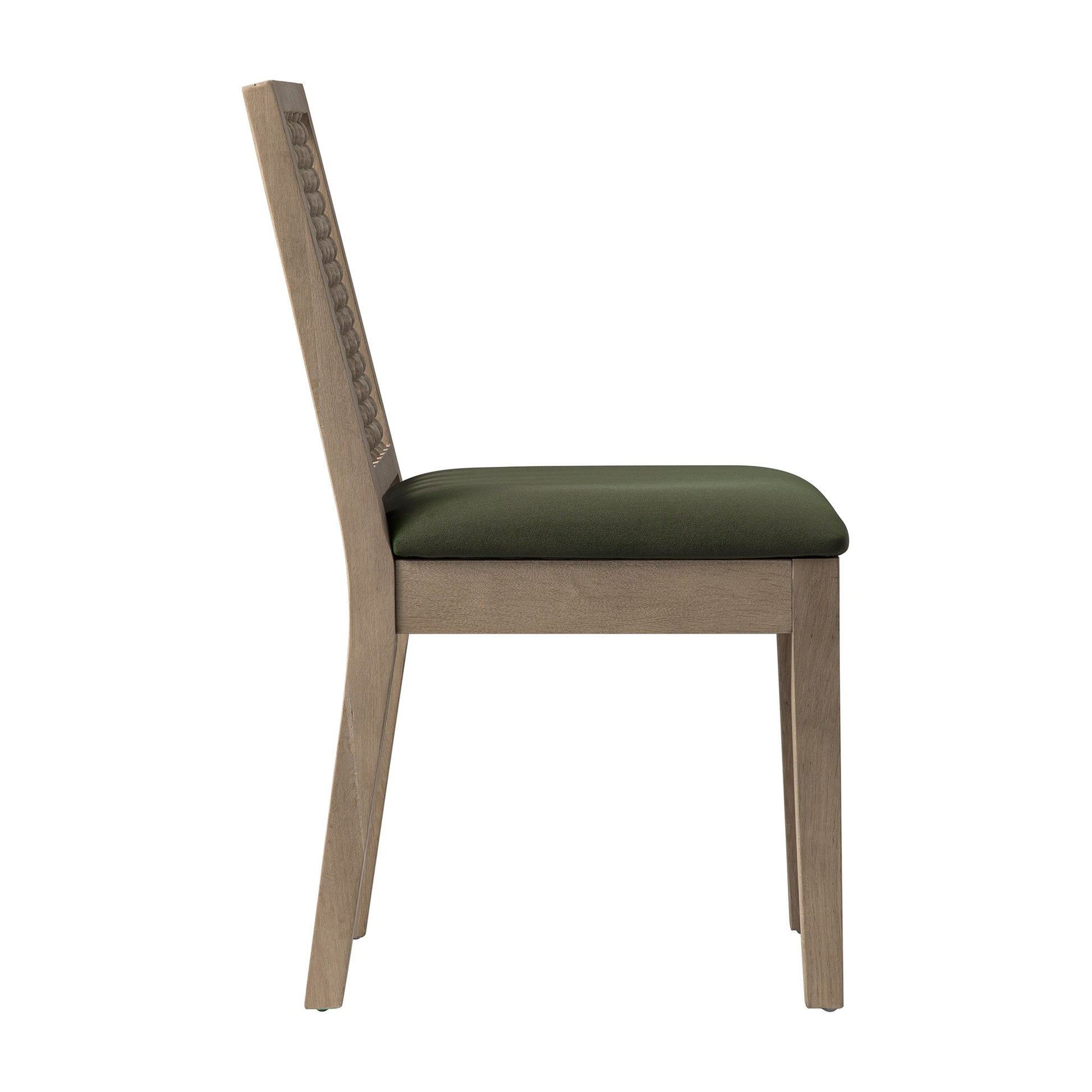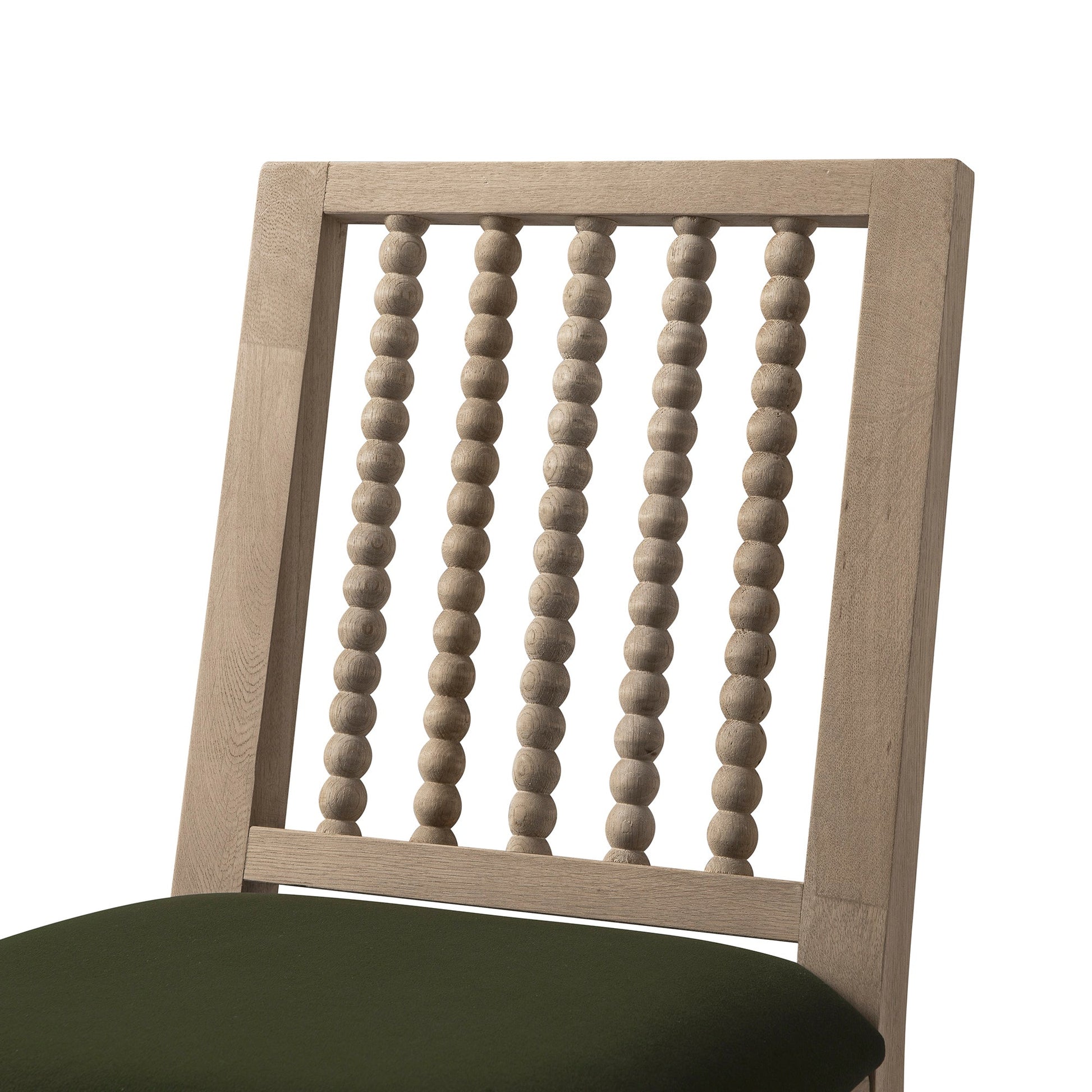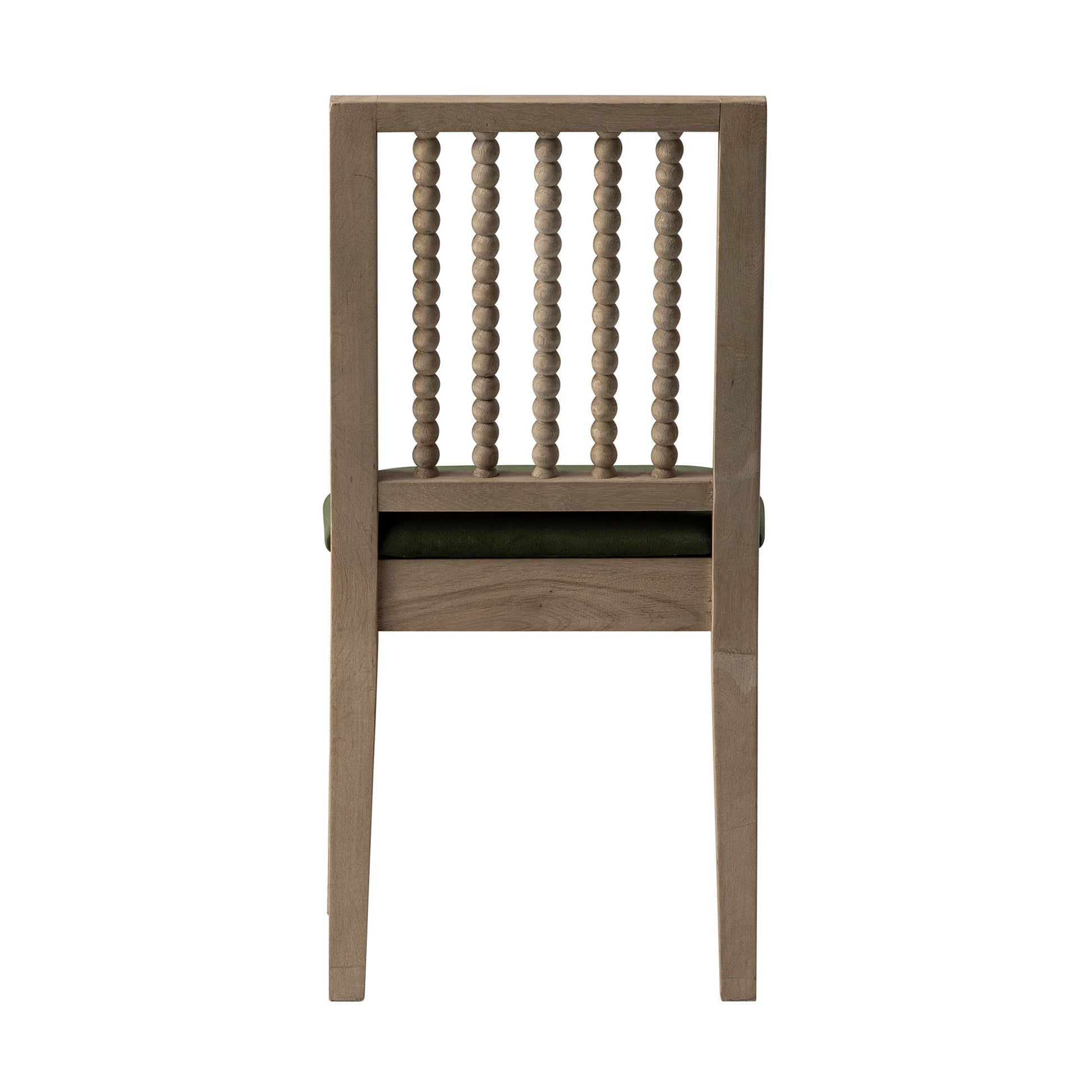 - Les chaises ont un siège rembourré recouvert d'un tissu toucher velours vert mousse.