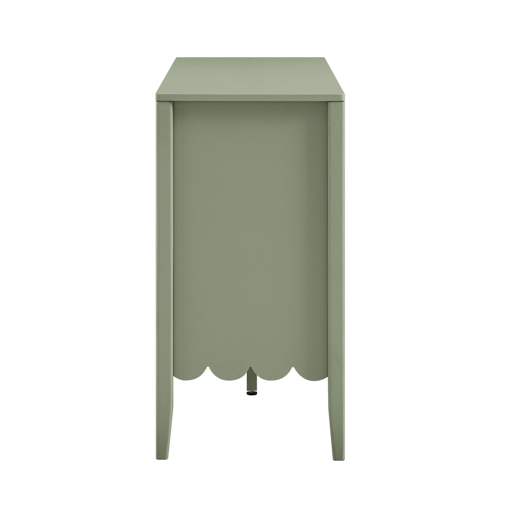 Buffet Henley à bords festonnés, 150 cm de large, avec étagère ouverte, vert sauge