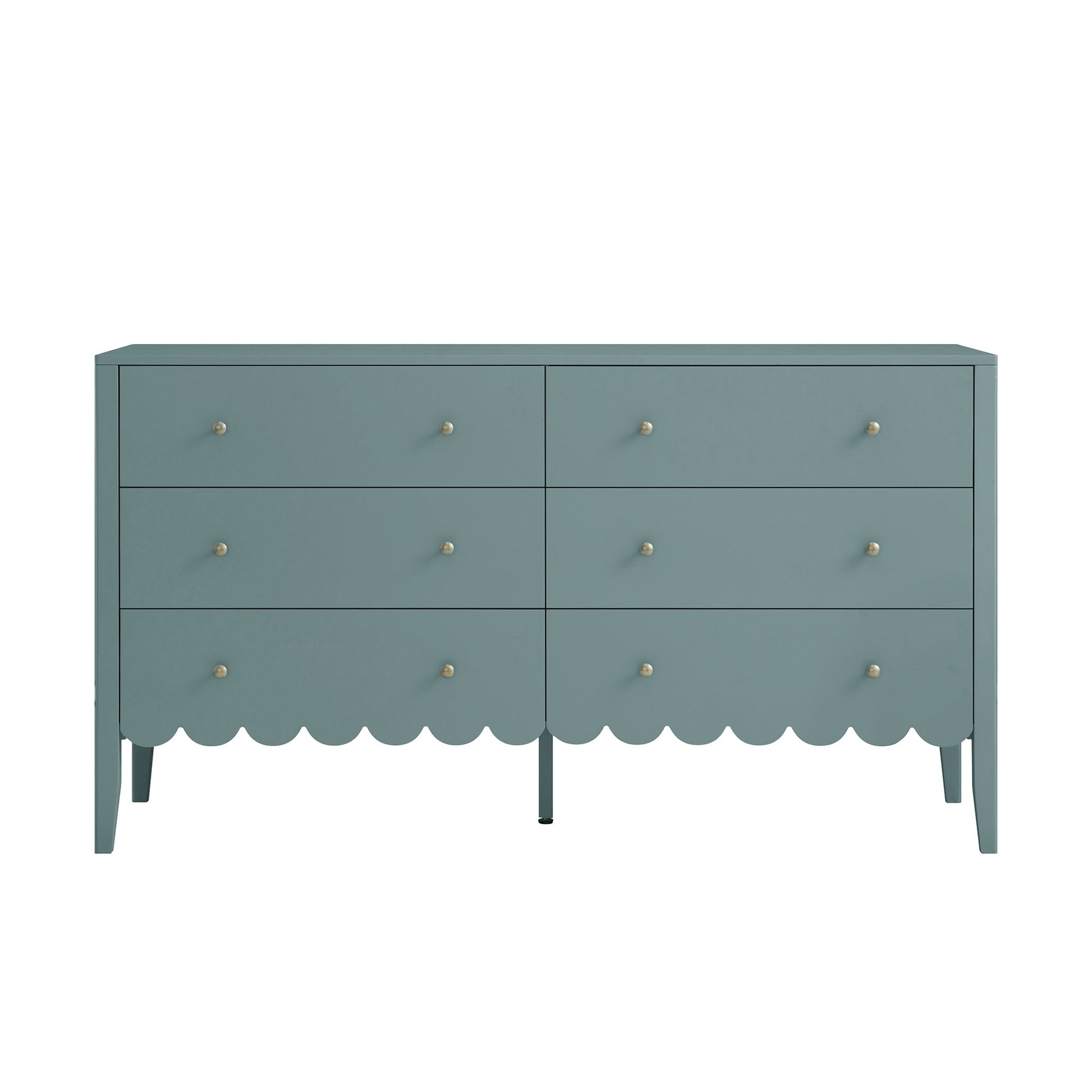 Commode Henley à 6 tiroirs et bords festonnés, 140 cm de large, épicéa bleu