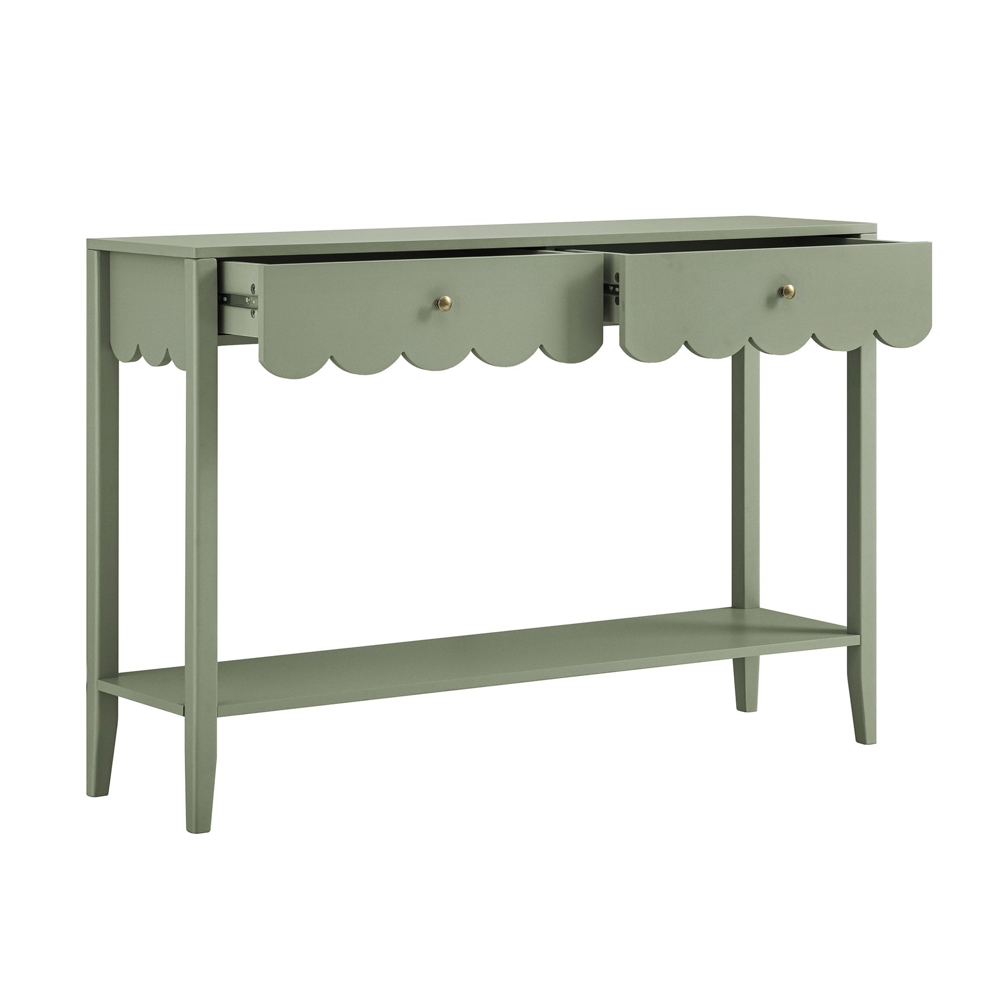 - La console offre un large plateau pour exposer vos ornements préférés, tandis que l'étagère ouverte offre un espace de rangement supplémentaire.