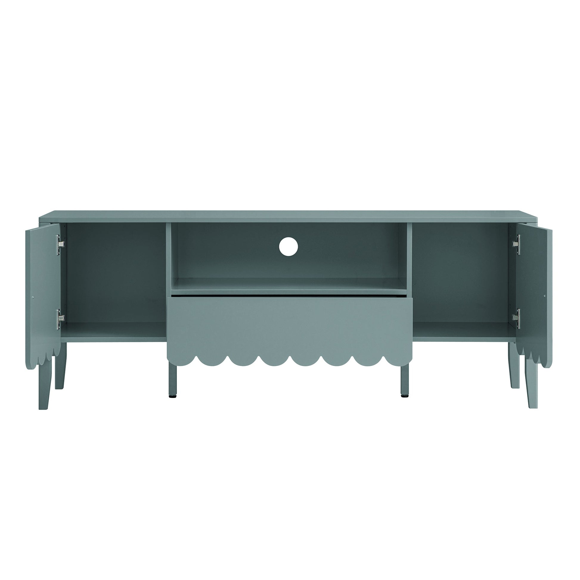 Meuble TV Henley à bords festonnés, 150 cm de large, épicéa bleu