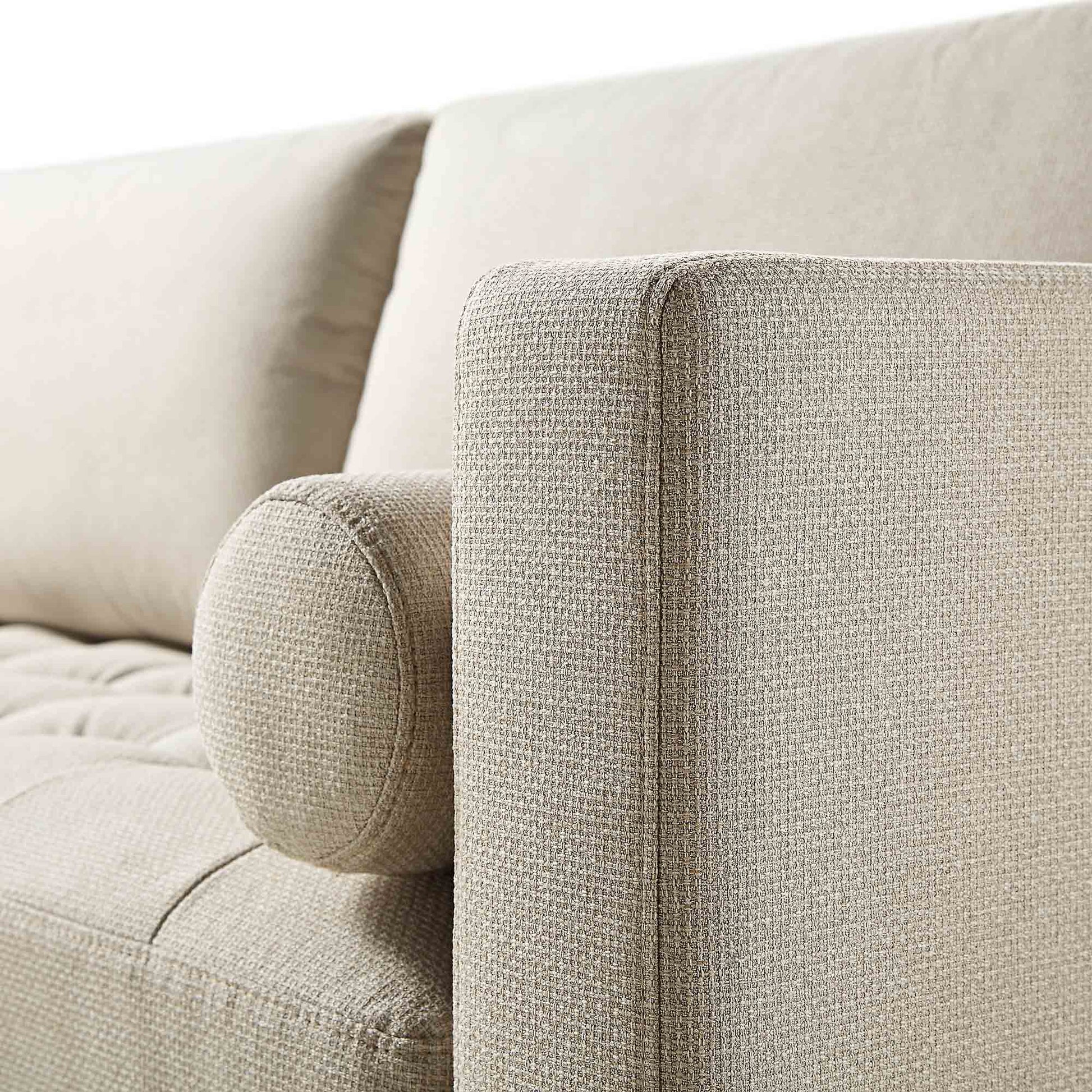 Canapé méridienne 4 places Henrietta en tissu tissé beige, orientation gauche