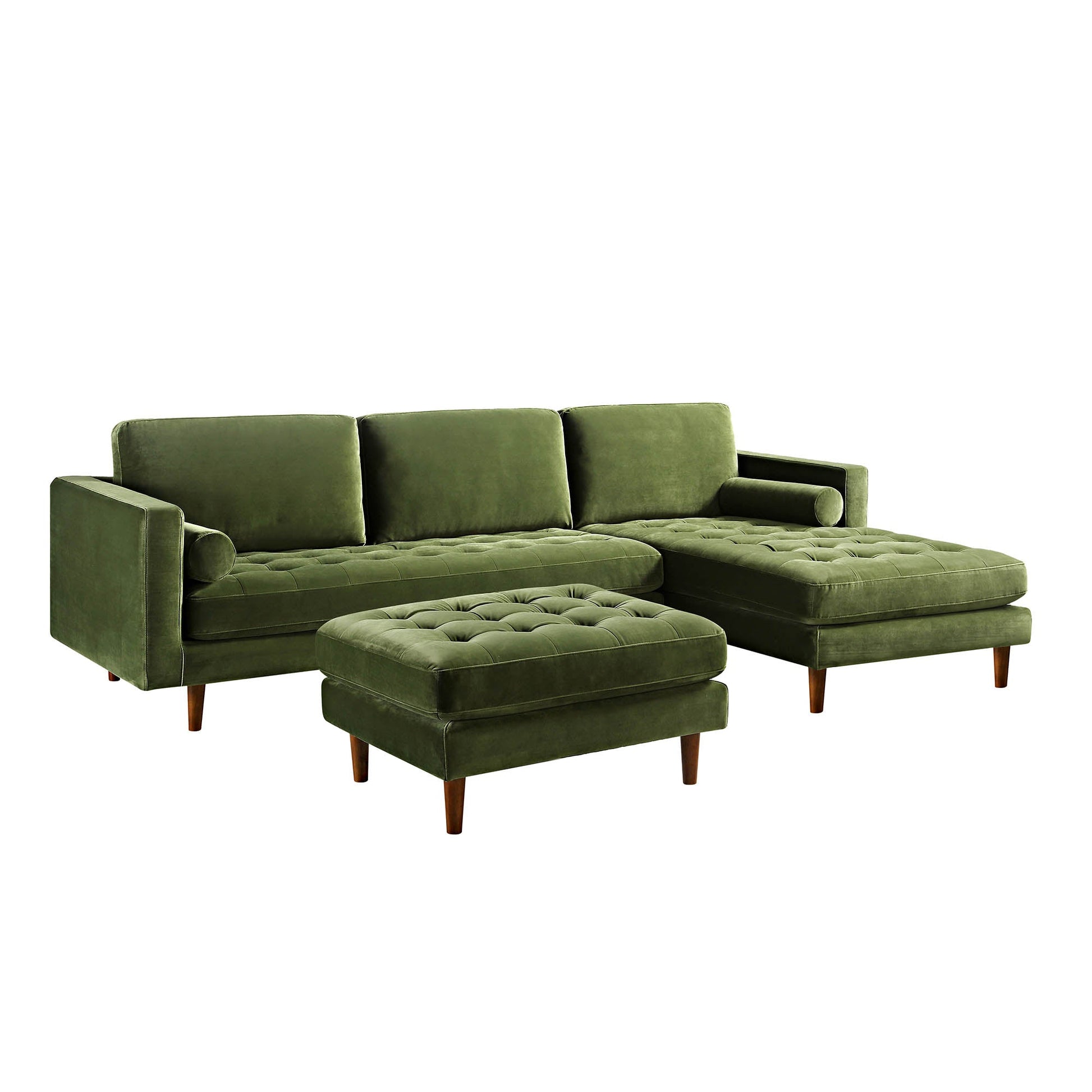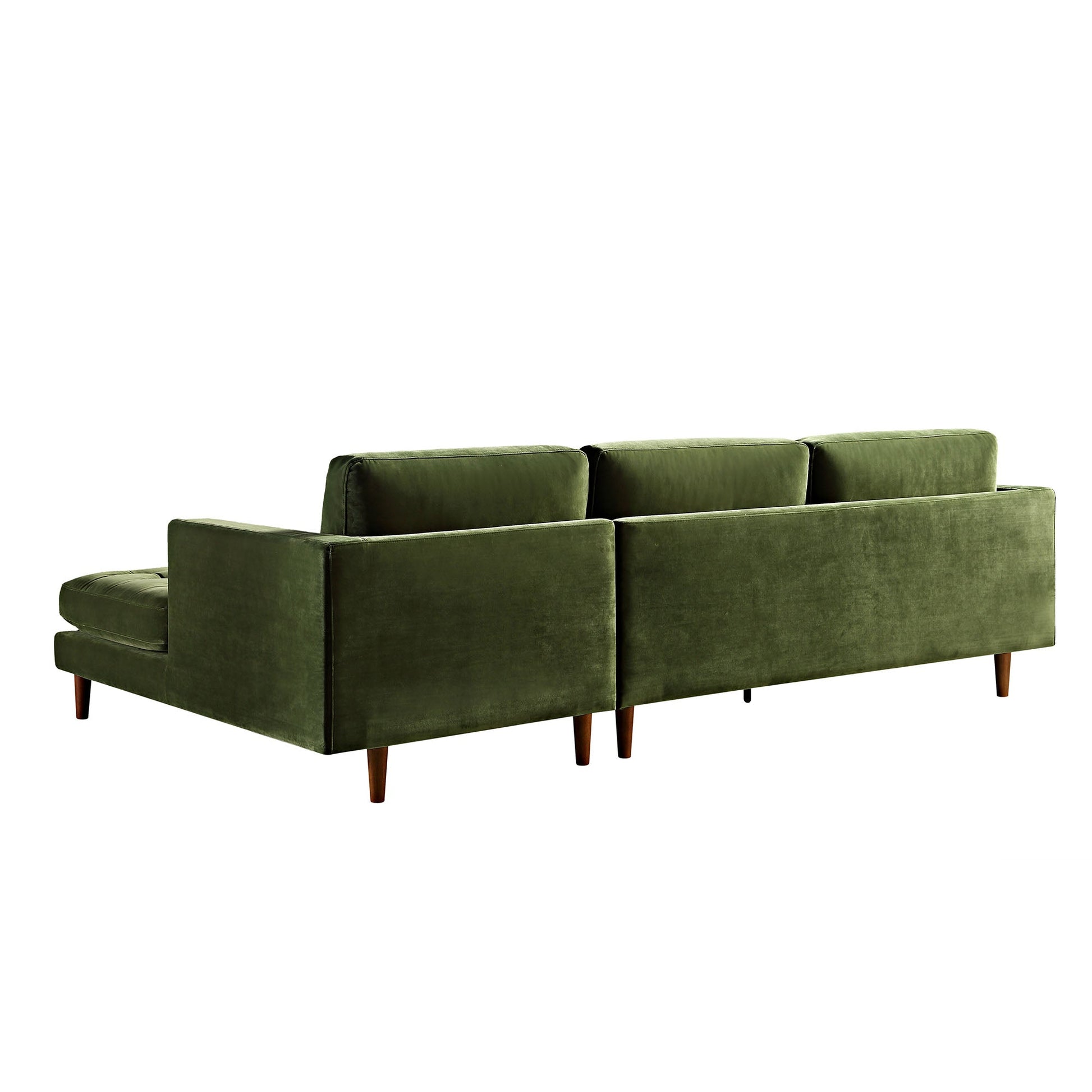 Grand canapé méridienne 4 places en velours vert Henrietta Moss, orienté à droite