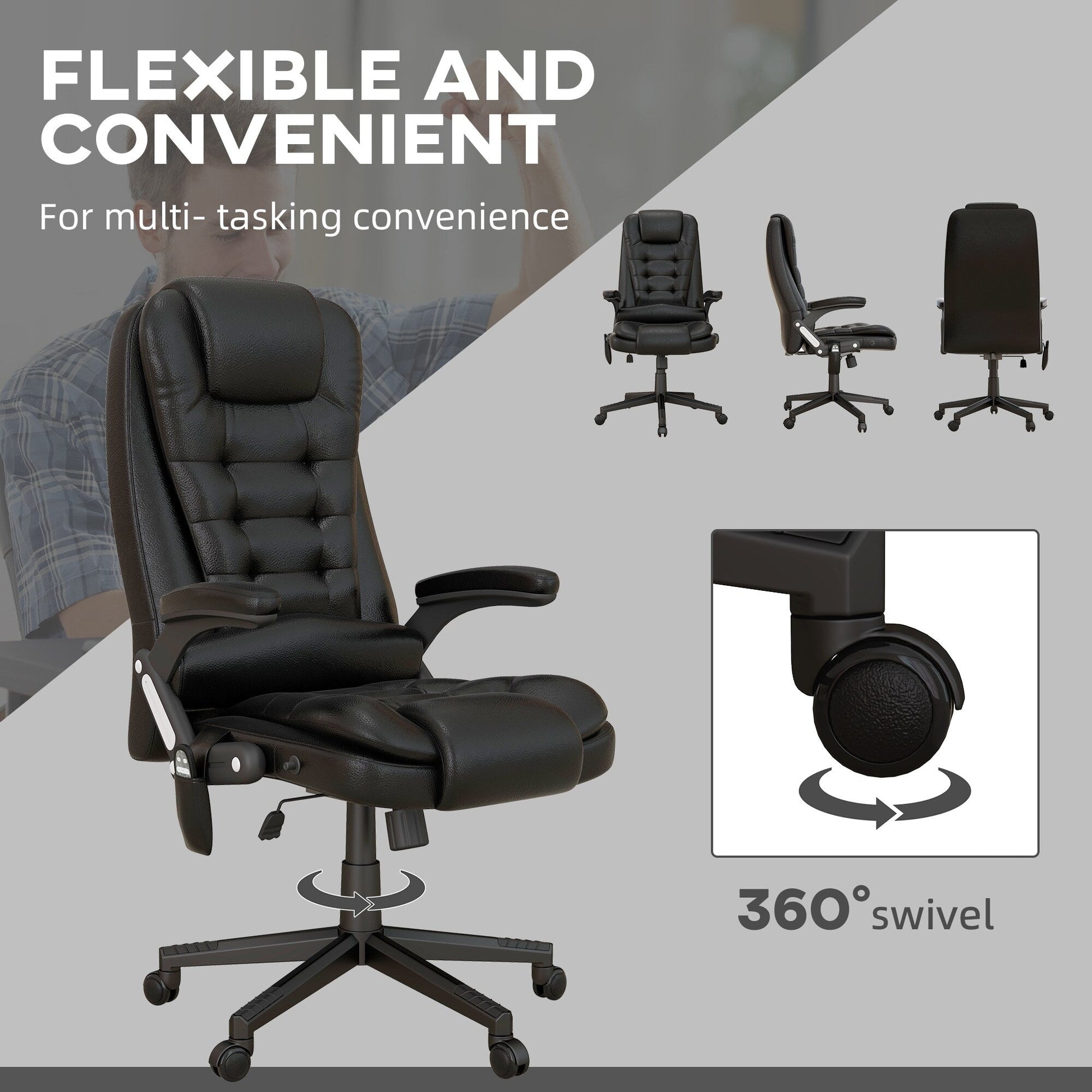 Si vous travaillez à domicile ou passez beaucoup de temps au bureau, il vous faut un fauteuil robuste, que ce soit pour réviser un examen important ou finaliser un projet conséquent. Ce fauteuil de bureau HOMCOM répond à toutes vos exigences et vous offre un confort exceptionnel grâce à ses fonctions de massage et de chauffage relaxantes. Allongez-vous et laissez-le soulager les tensions douloureuses de votre dos. Confort et fonctionnalité sont essentiels pour un fauteuil de travail, et HOMCOM sait parfaitement les allier.