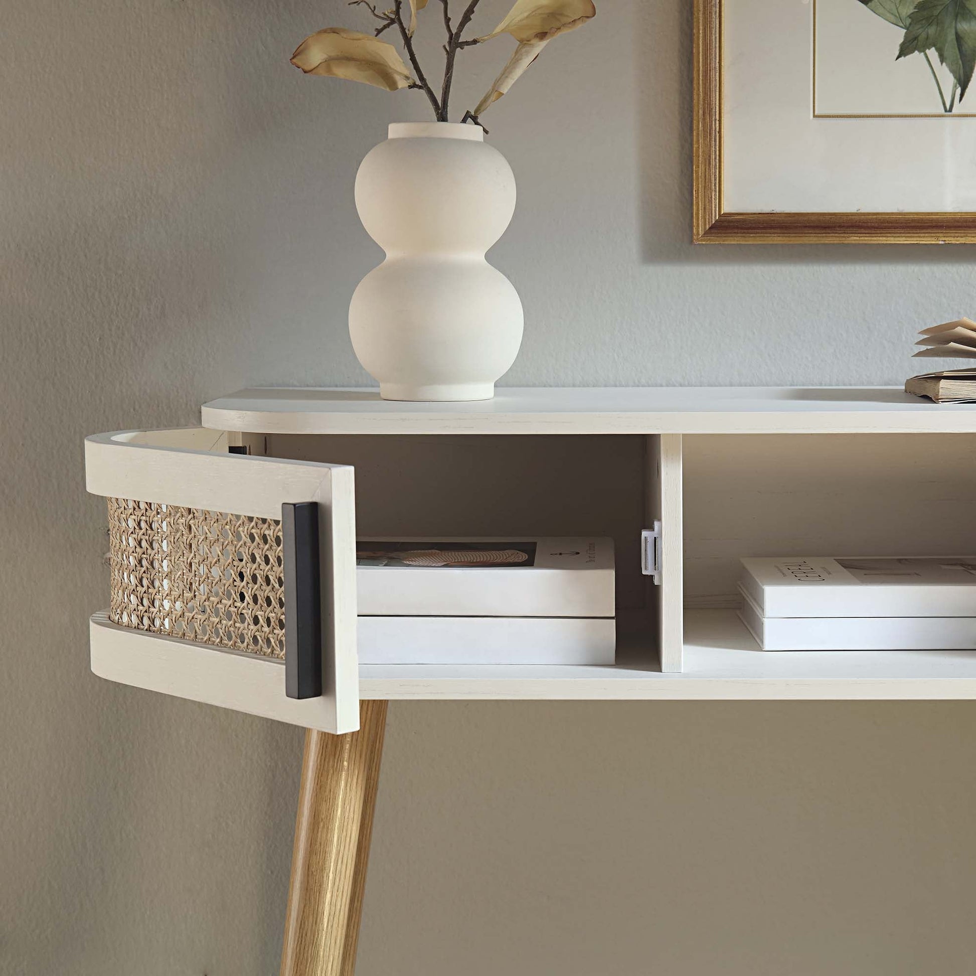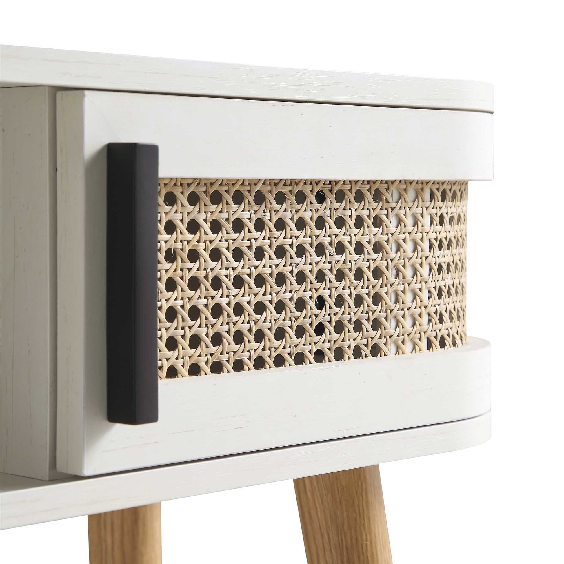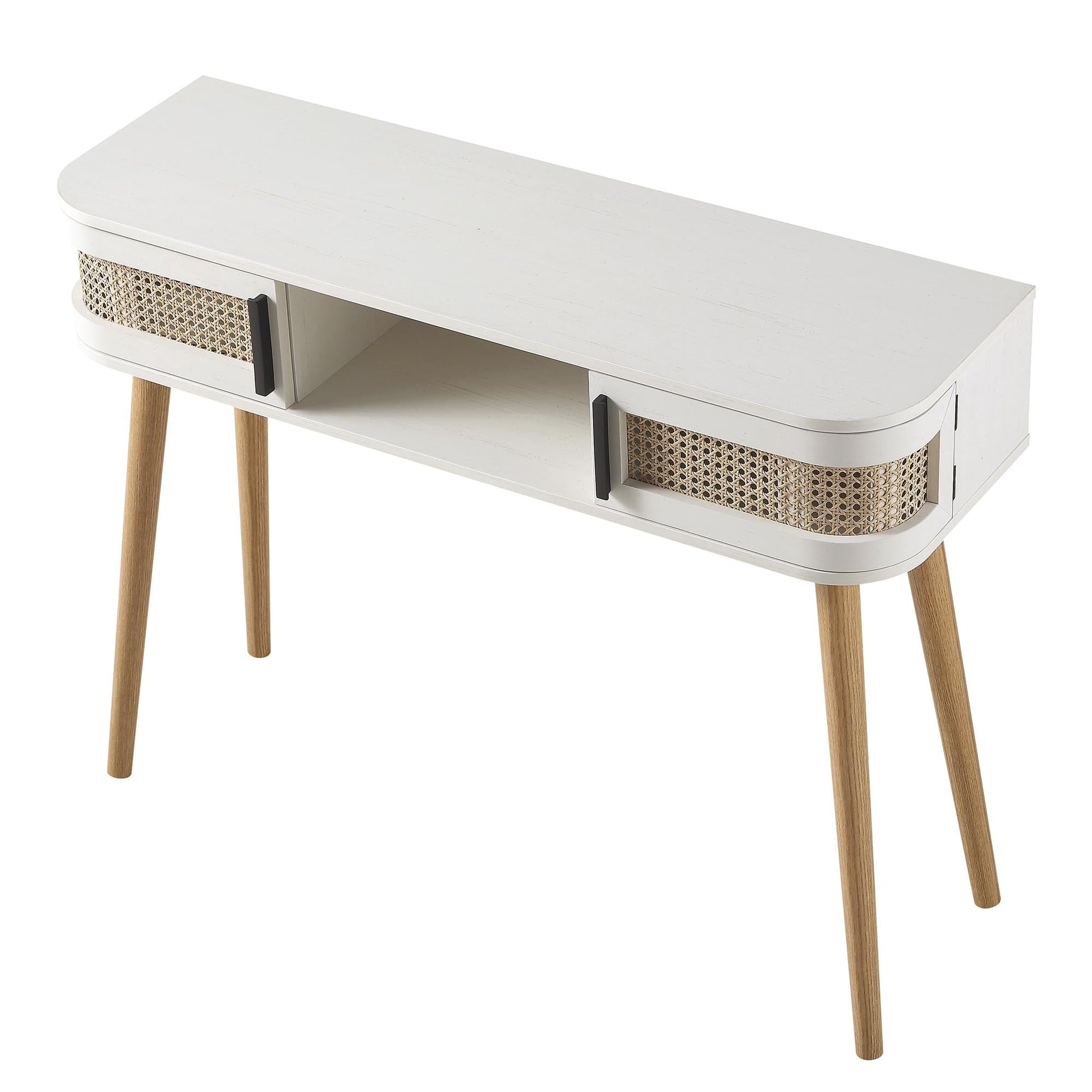 Table Izzy incurvée en rotin à 2 portes, blanche