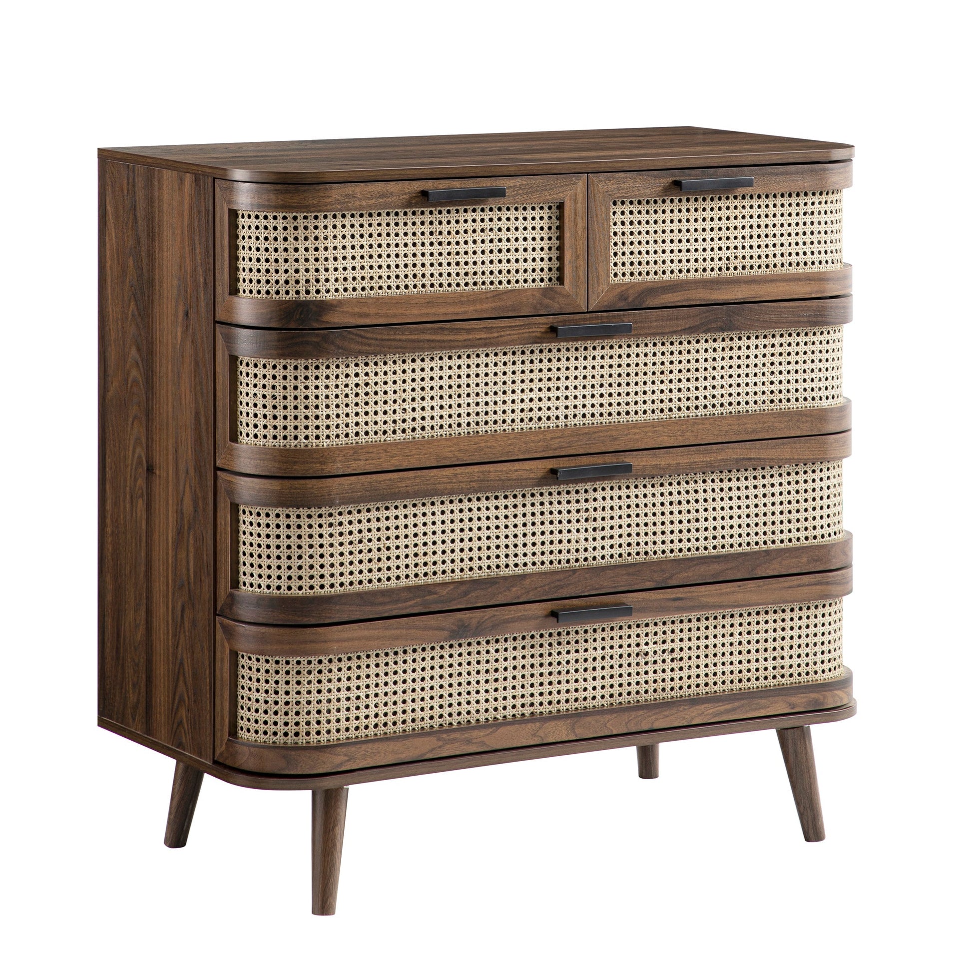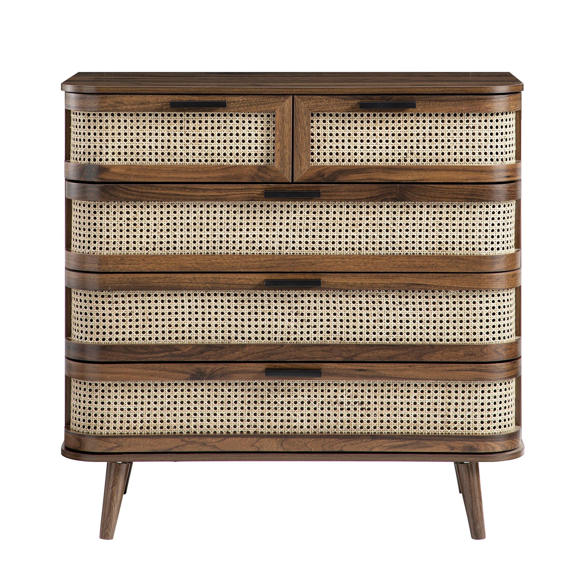 Commode 5 tiroirs en rotin courbé Izzy, noyer