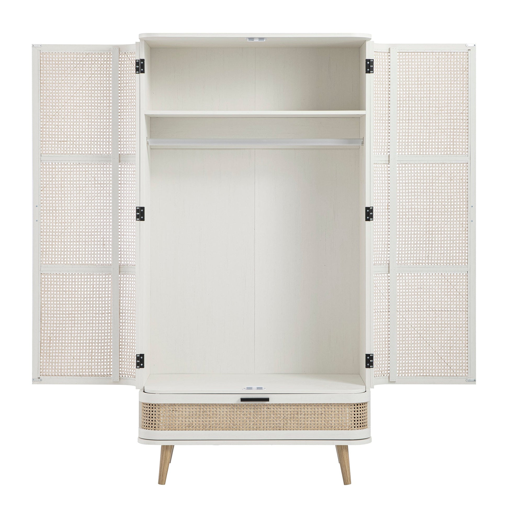 - Légère, aérée et pleine de charme, l'armoire double en rotin incurvé Izzy en blanc est conçue pour apporter une élégance sans effort à votre chambre.