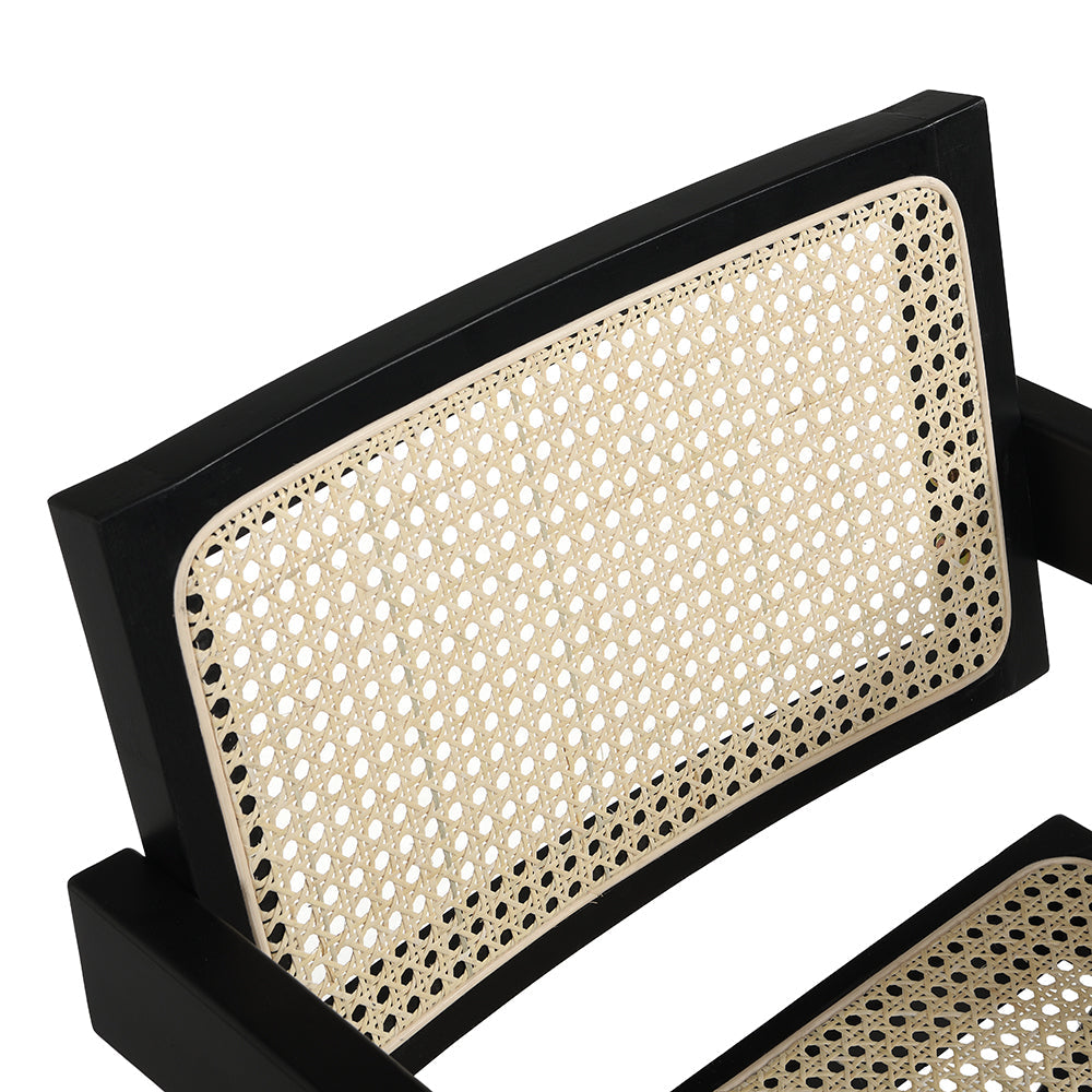 Chaise de salle à manger Jeanne en rotin et hêtre massif de couleur noire