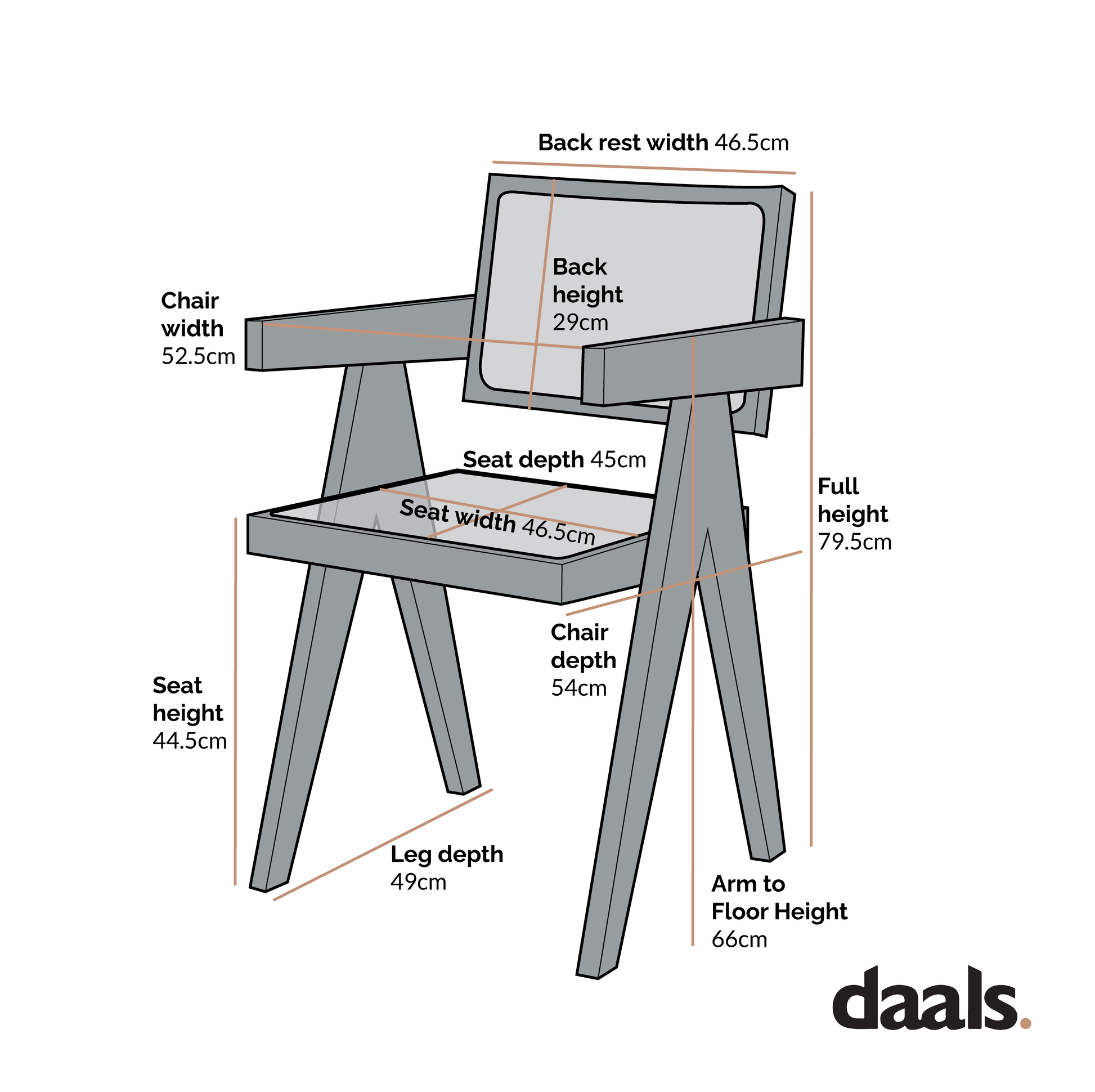 - Dimensions totales de la chaise : L 53 x P 58 x H 79 cm