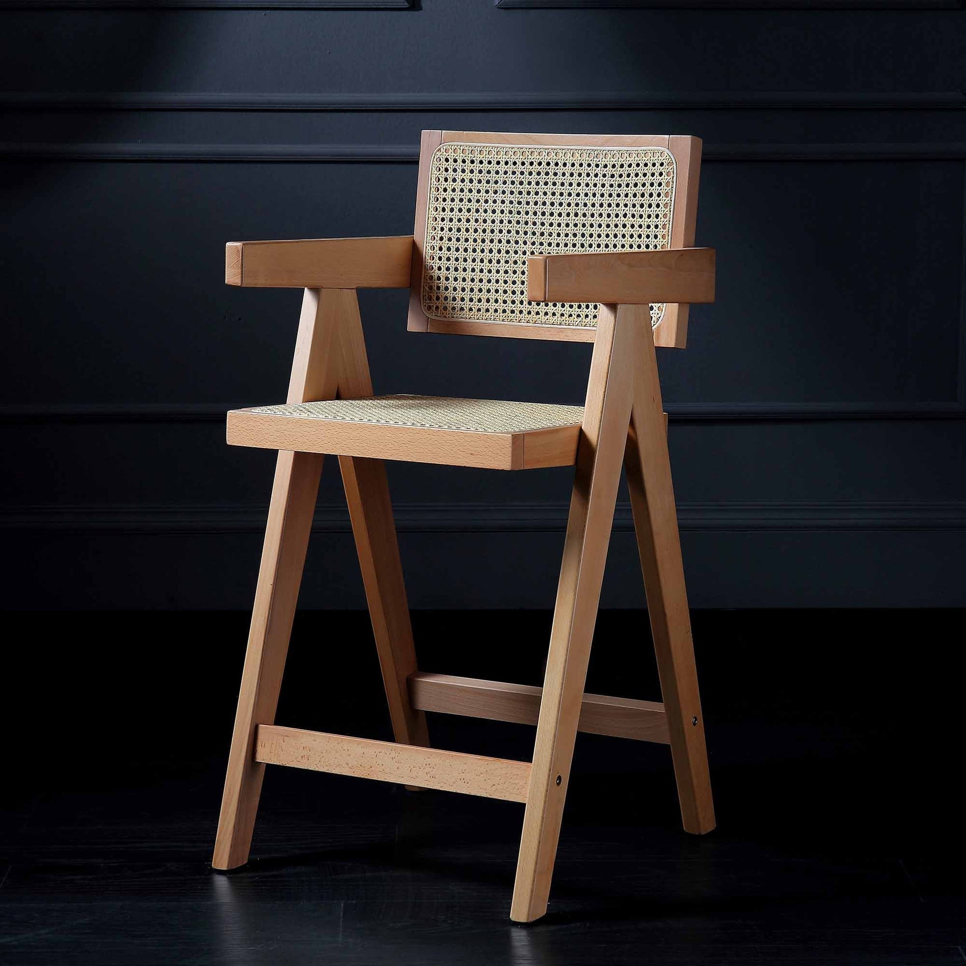 Tabouret de bar Jeanne en hêtre massif et rotin couleur naturelle