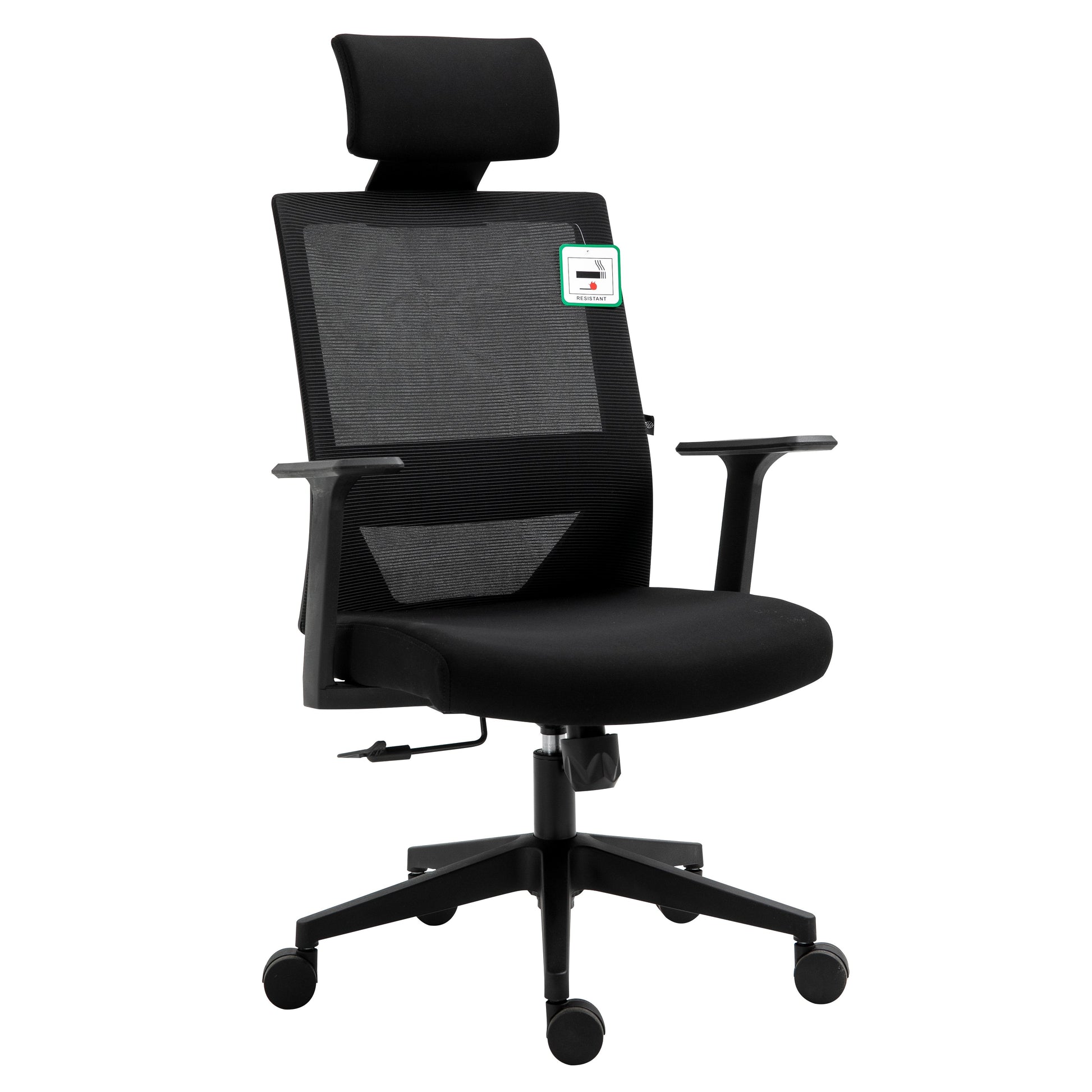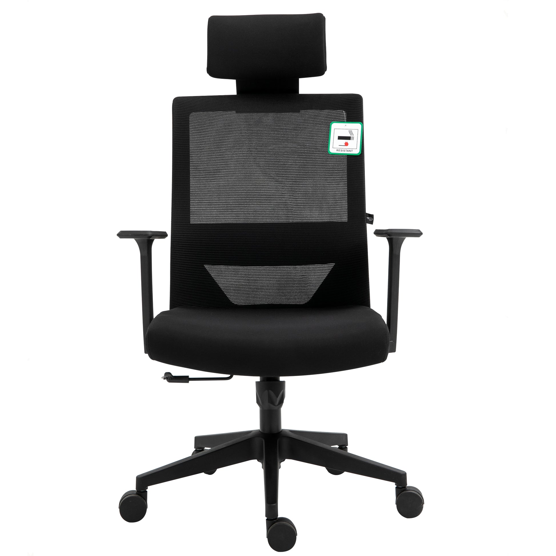 Chaise de bureau Joni à dossier haut en maille avec appui-tête en noir