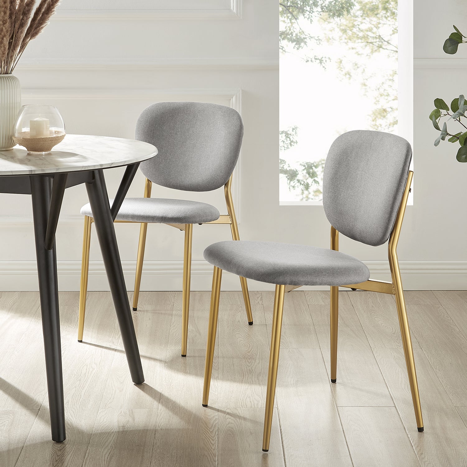 Ensemble de 2 chaises de salle à manger rembourrées en tissu gris clair Kelmarsh