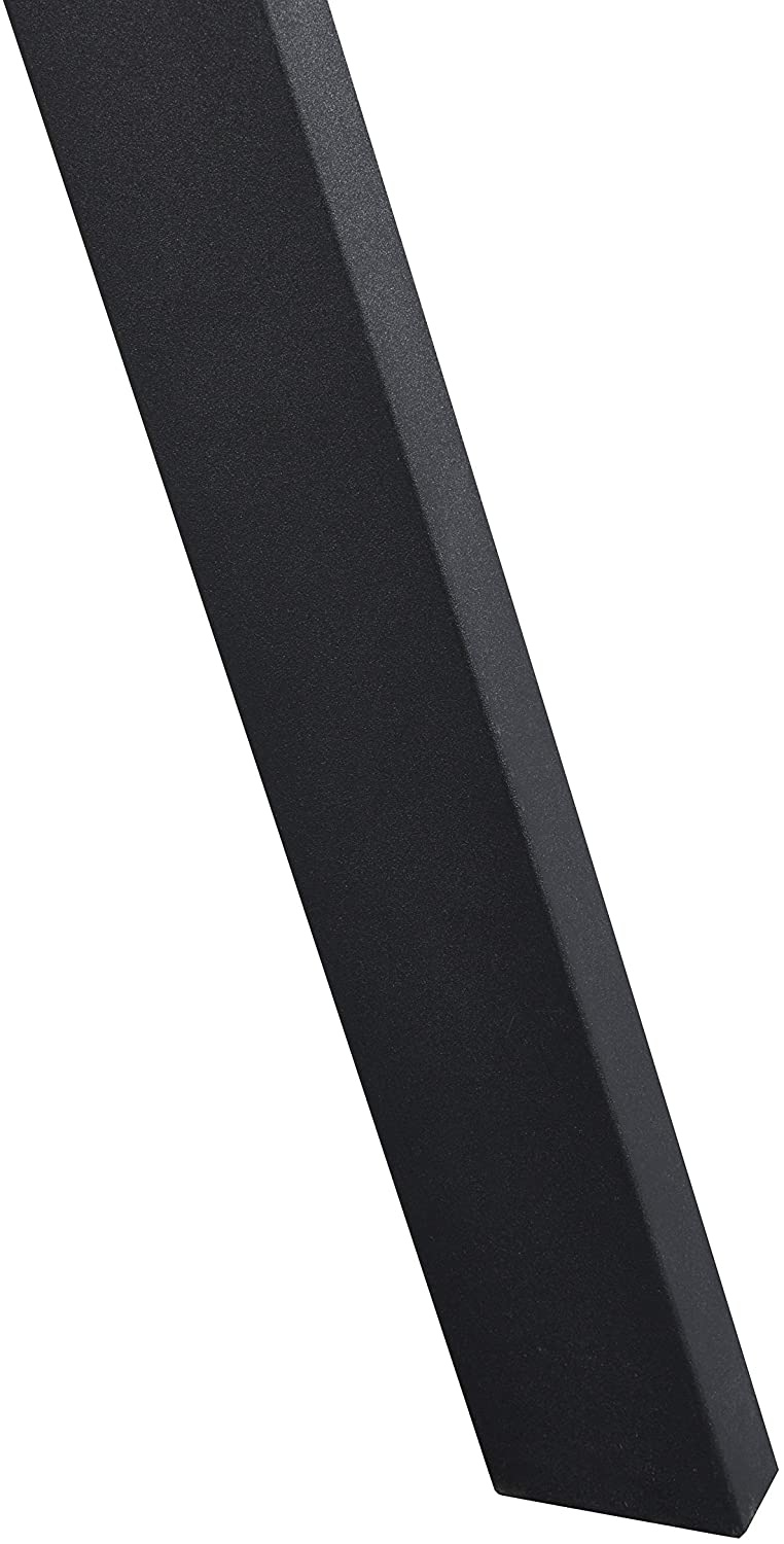 - Dotée d'un plateau effet bois foncé avec des bords incurvés et des pieds en métal noir, la table convient à tous les décors et options d'assise contemporains.