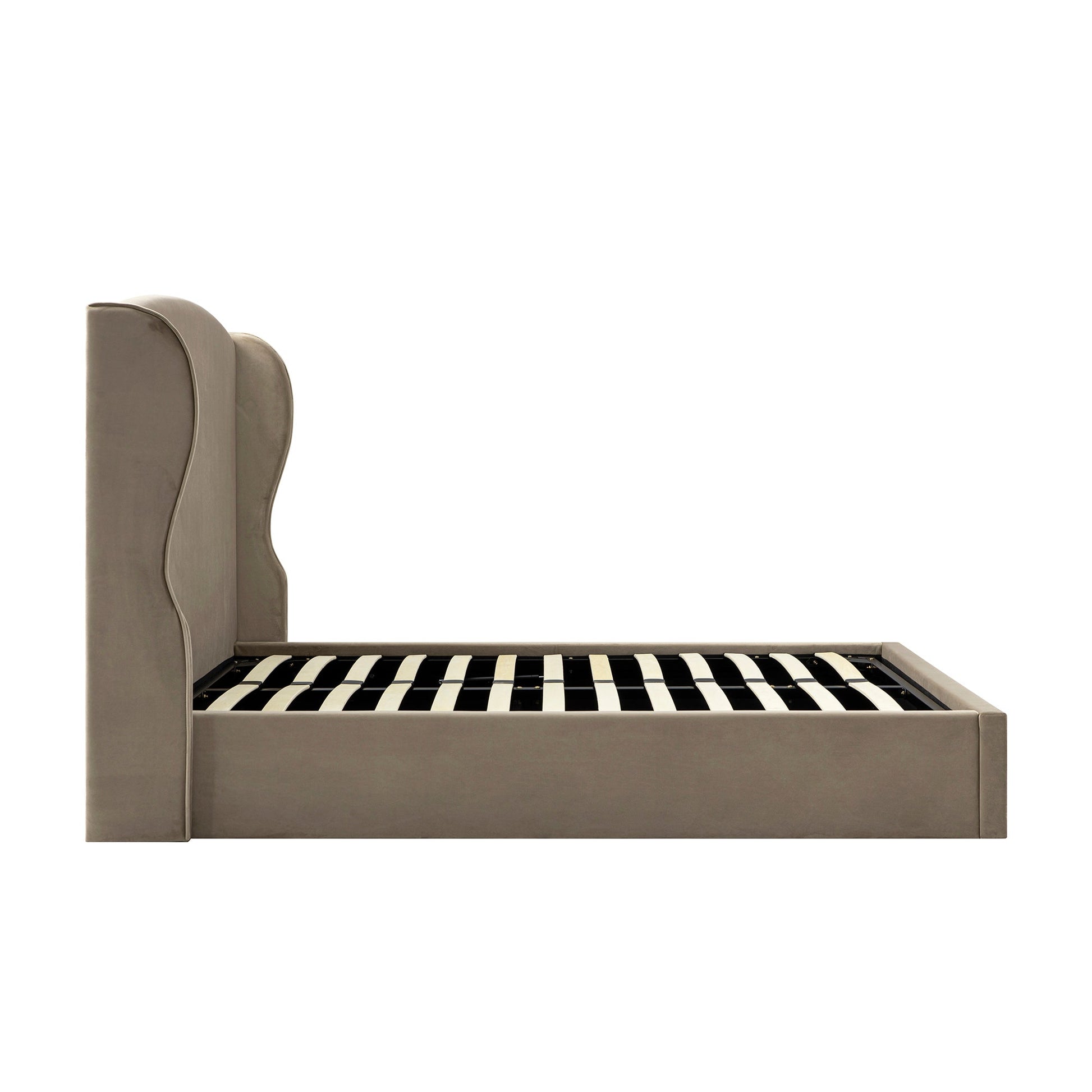 Lit de rangement rembourré à oreilles Kimberly, velours taupe