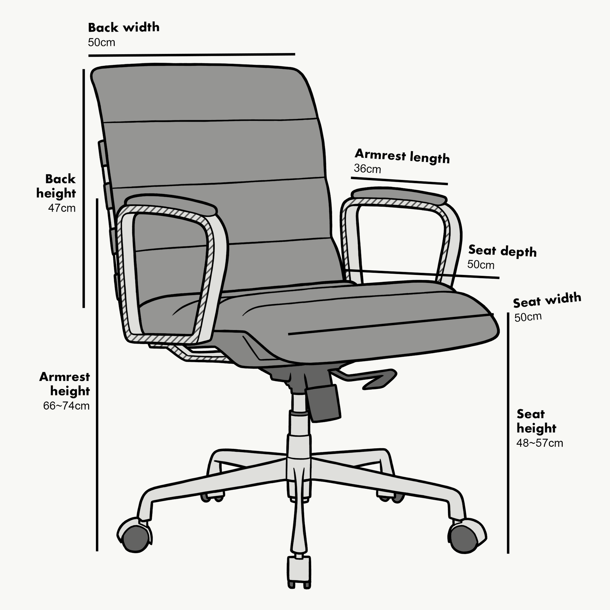 - Spécifications du produit - Dimensions totales de l'article : L 65 x P 67 x H 91~99 cm - Hauteur du siège : 48~57 cm - Largeur du siège et du dossier : 50 cm - Hauteur des accoudoirs : 66~74 cm - Hauteur du dossier : 47 cm