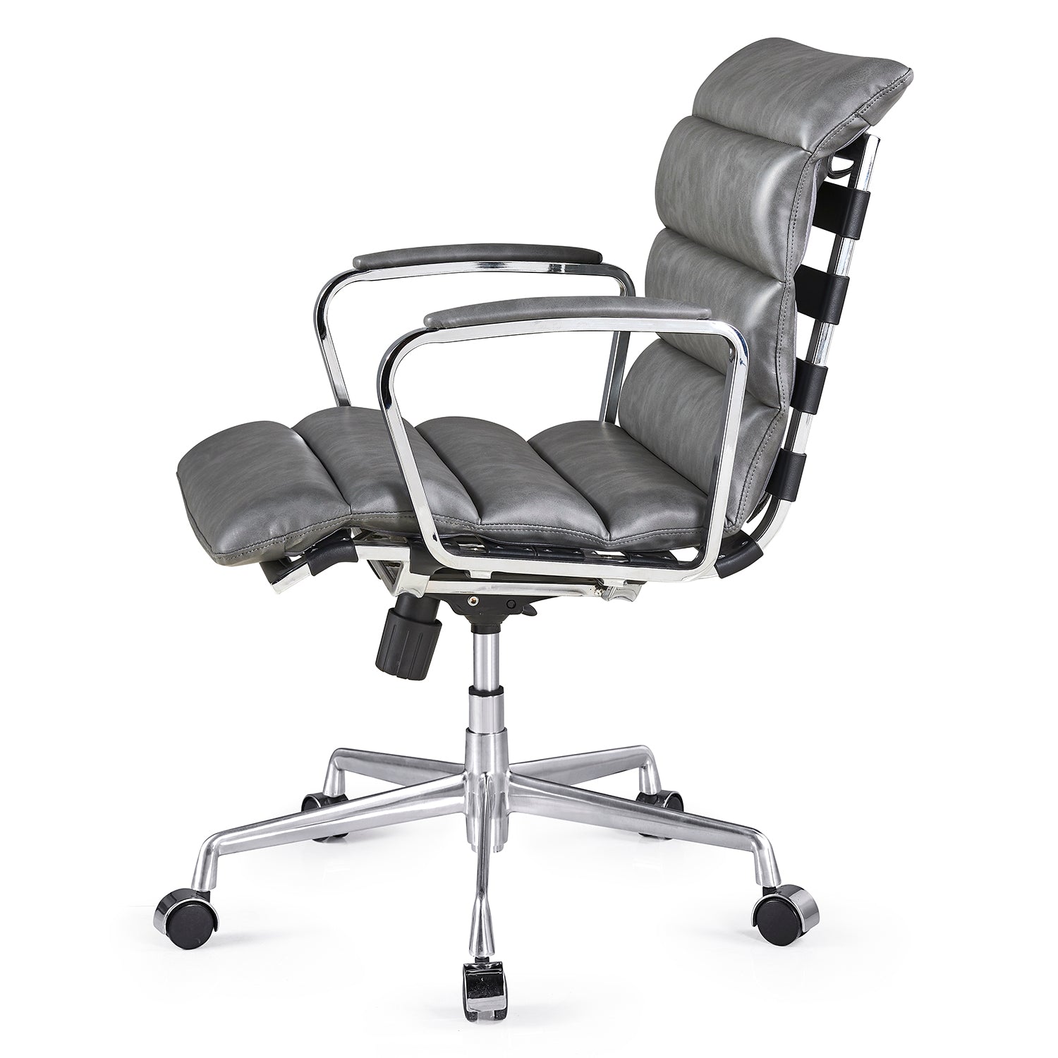 Chaise de bureau Kingston en similicuir effet vintage avec cadre chromé et base en aluminium gris