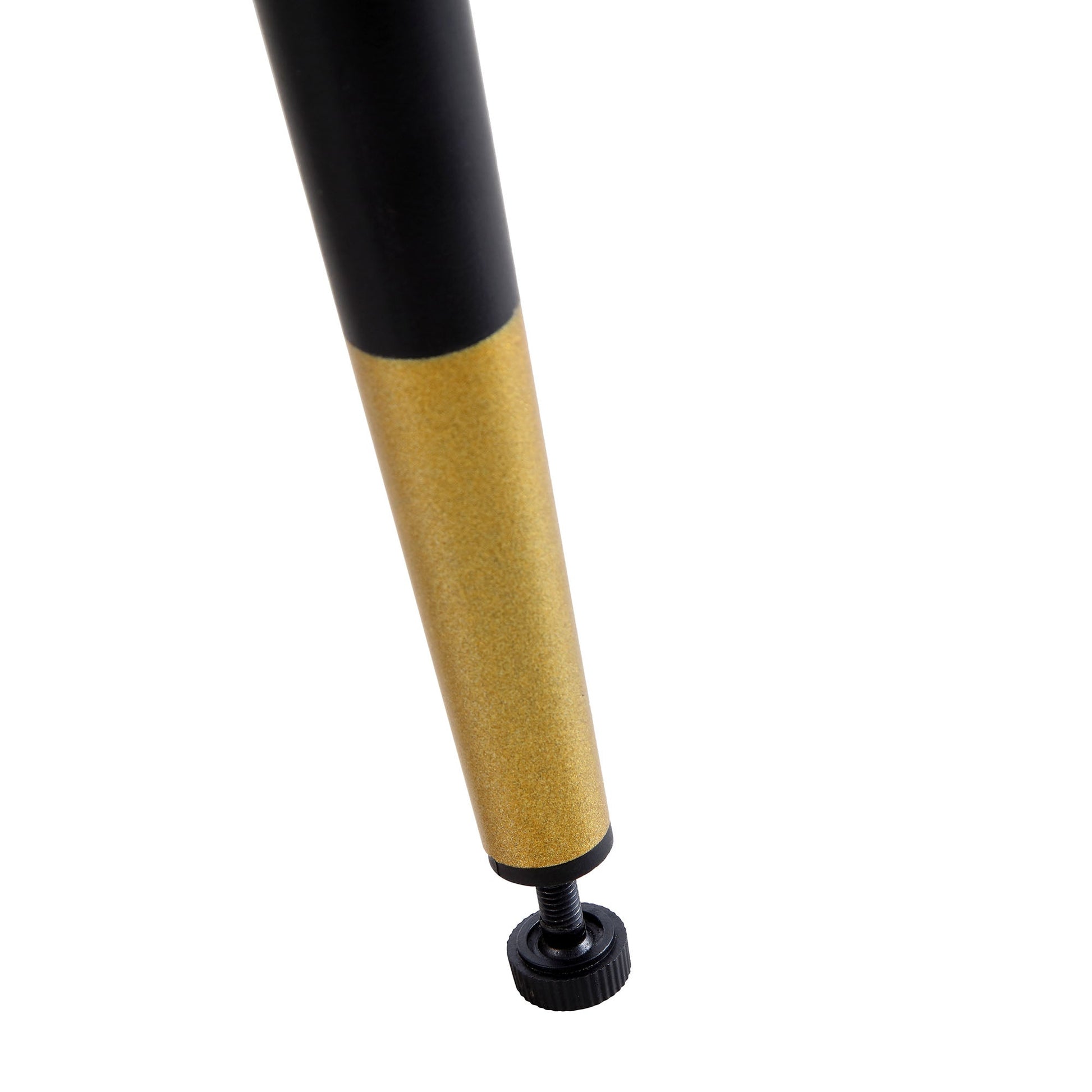 - Les pieds en métal noir sont rehaussés d'une touche dorée qui rehausse l'attrait des chaises. Des pieds réglables permettent de s'adapter aux sols irréguliers.