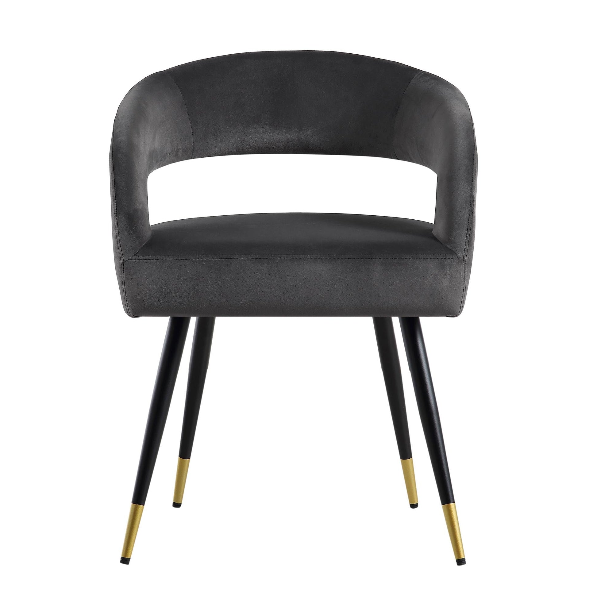 - Le dossier incurvé découpé s'intègre parfaitement aux accoudoirs et à l'assise, associé à des pieds légèrement effilés avec une pointe dorée pour un look élégant.
