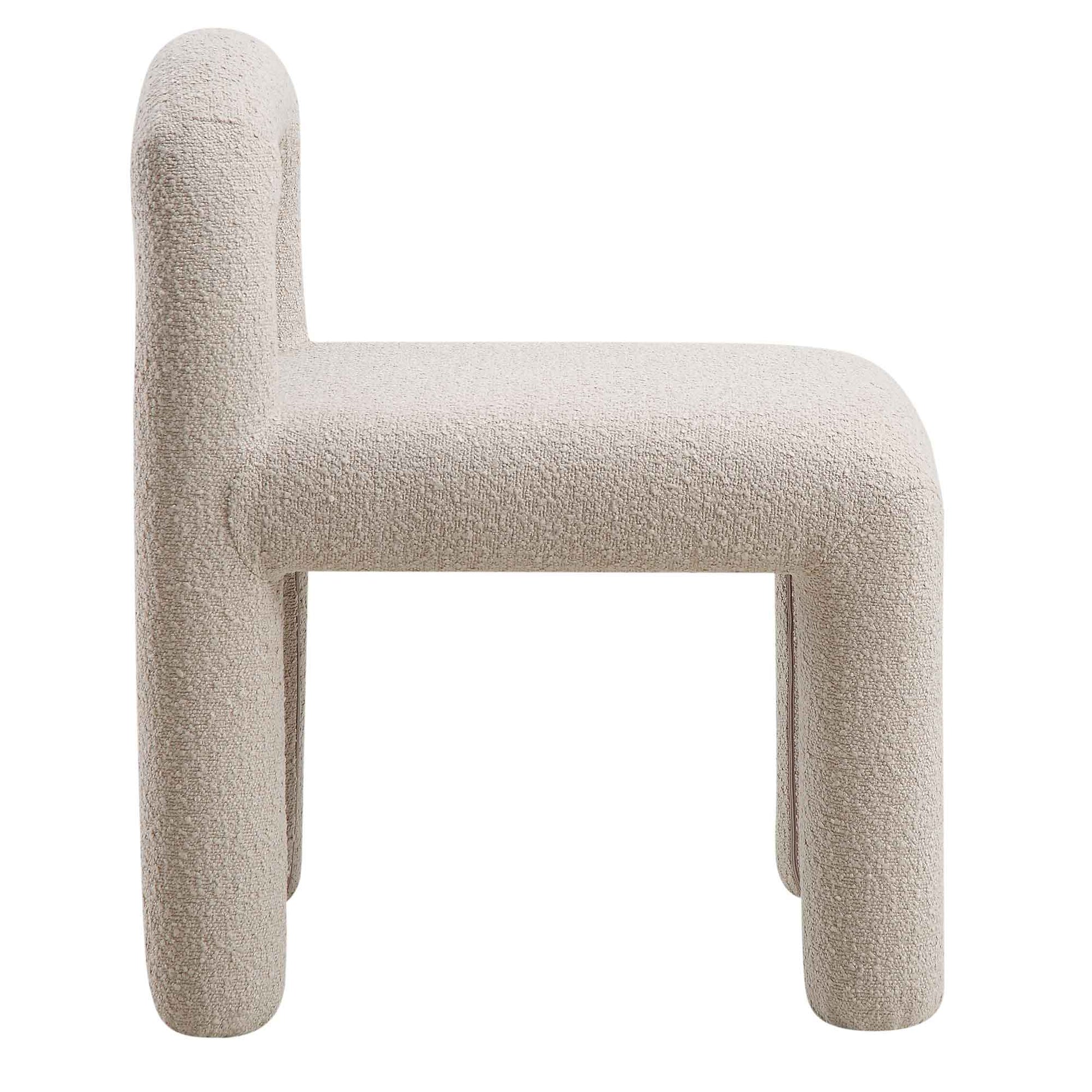 - Recouvert de tissu bouclé dans une teinte taupe clair, idéal pour tous les intérieurs contemporains.