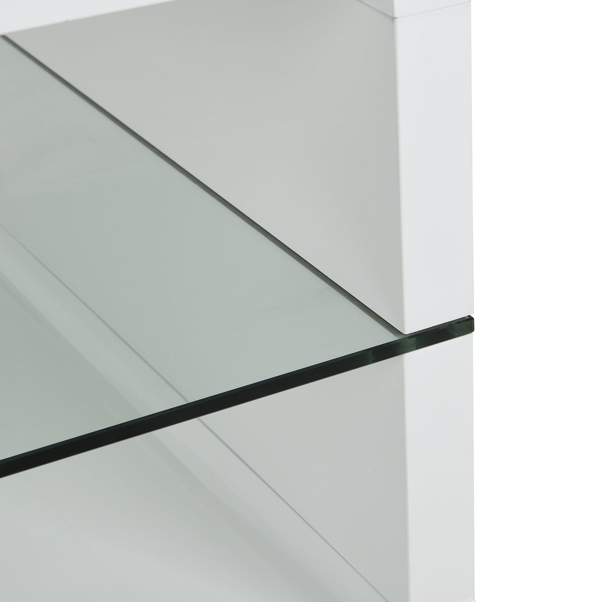 - Matériau : MDF avec finition peinte PU haute brillance, étagère en verre trempé de 8 mm