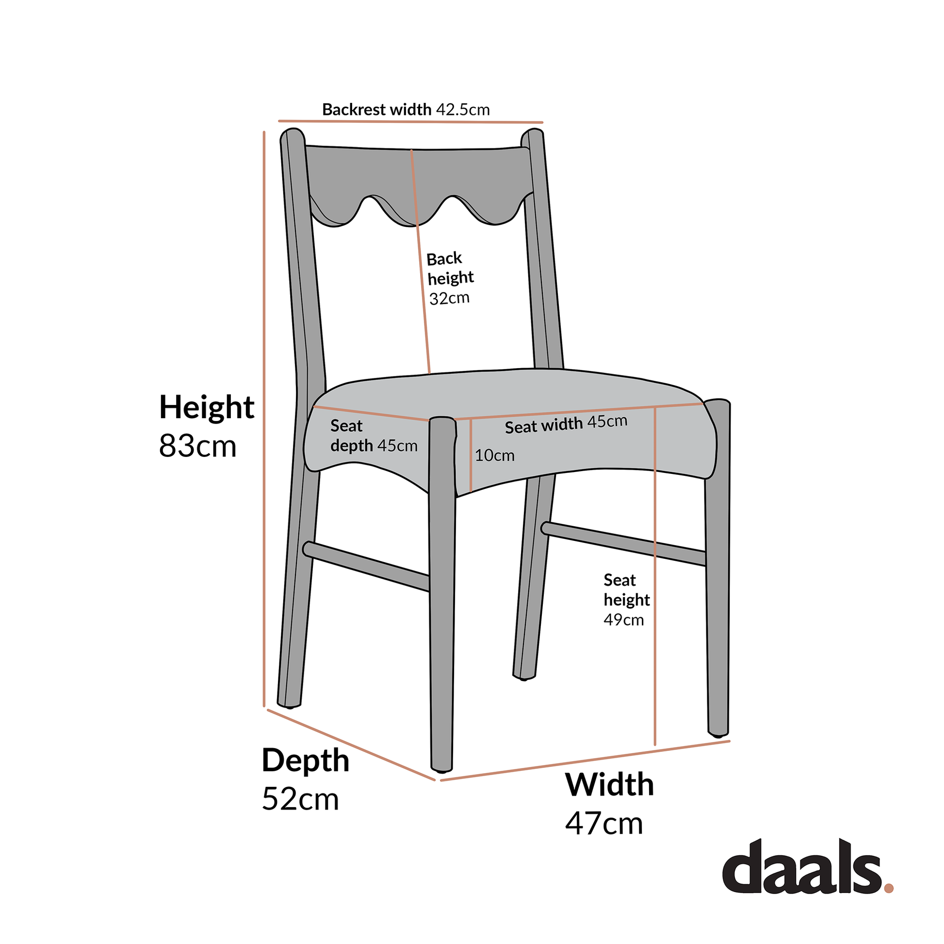- Son dossier festonné distinctif sculpte une silhouette audacieuse mais ludique, tandis que le siège rembourré offre un confort pour les repas et les conversations tardives.
