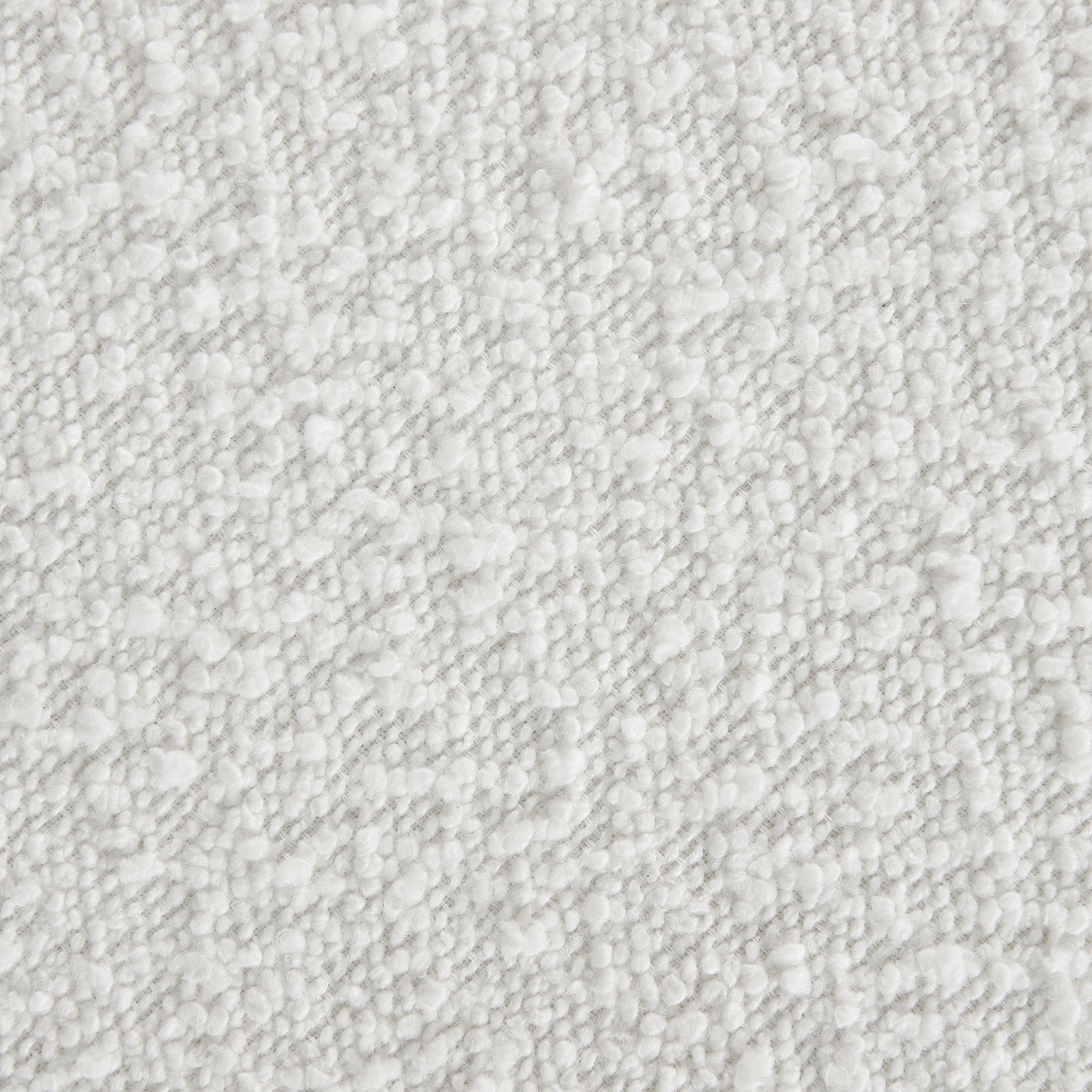 - Le siège recouvert de tissu bouclé ajoute une couche tactile de confort, créant un contraste harmonieux entre le grain du bois lisse et le tissu texturé.