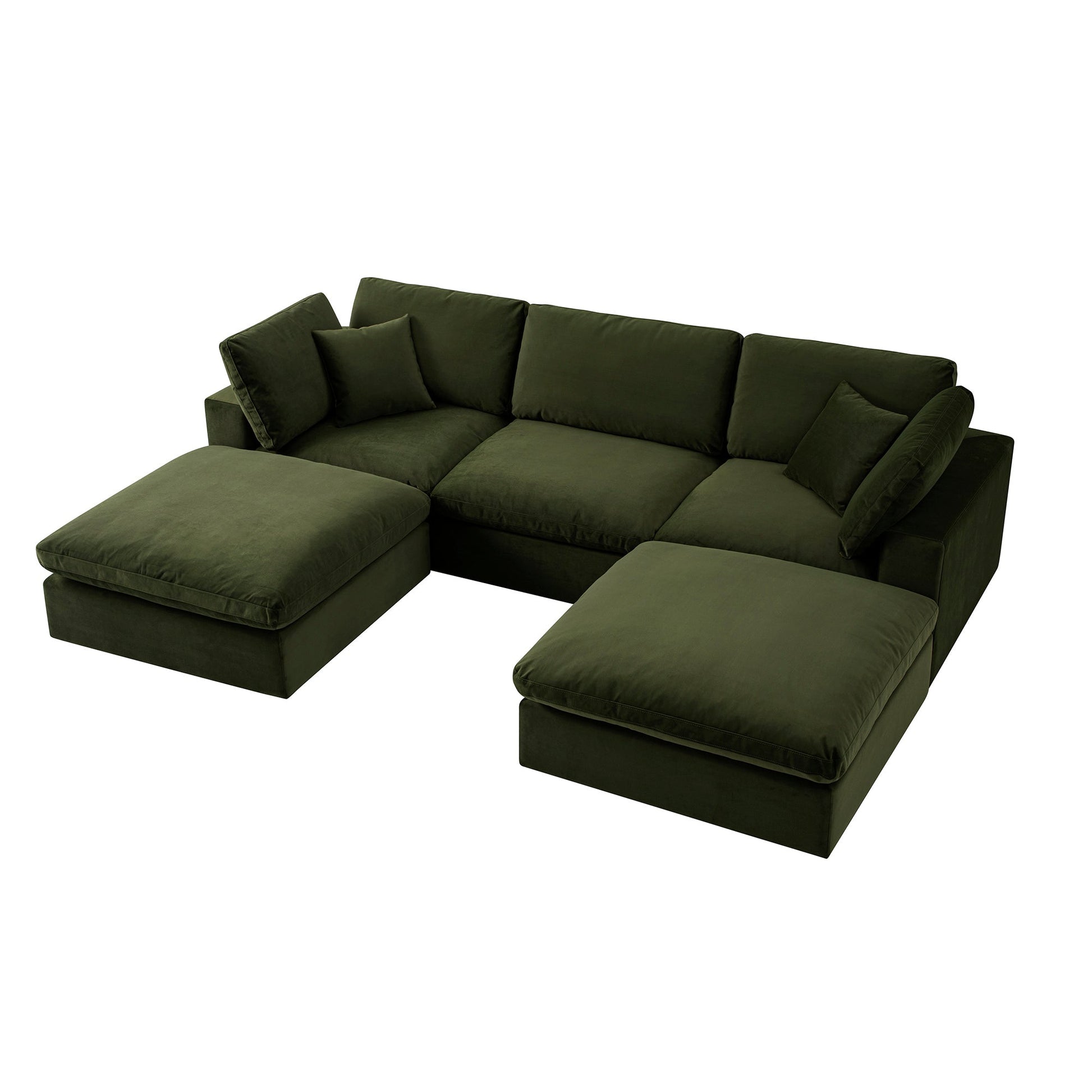 Canapé modulaire en velours vert mousse Lutyens, ensemble de 5 pièces en forme de U