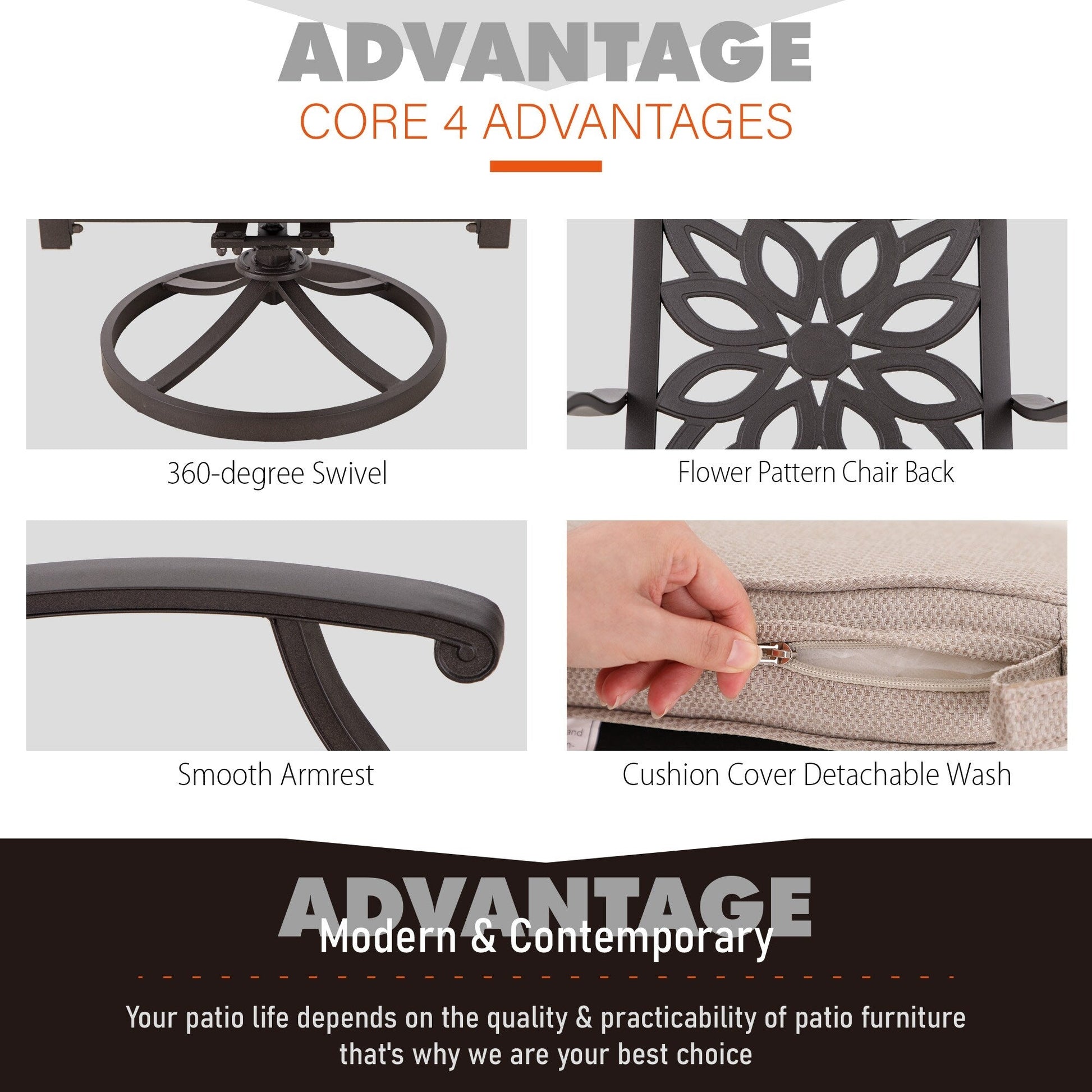 Cet ensemble de salle à manger d'extérieur en fonte d'aluminium peut être placé où vous le souhaitez dans votre maison. Résistant aux intempéries, il est conçu pour durer. Vous pourrez y prendre le thé en famille ou entre amis, manger, travailler ou même lire un livre. Pratique et polyvalent, il répondra à tous vos besoins et apportera une touche d'élégance à votre décoration extérieure.