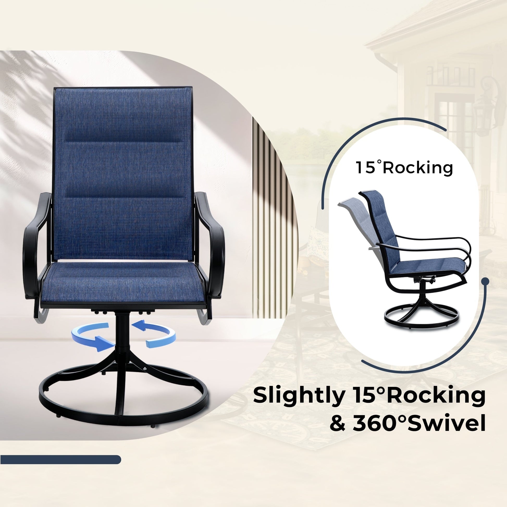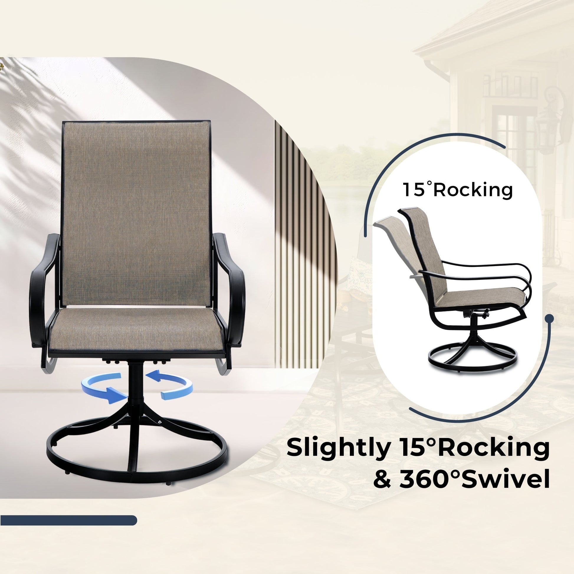 - 6 fauteuils pivotants en tissu Textilène et un design ergonomique légèrement berçant pour un confort accru