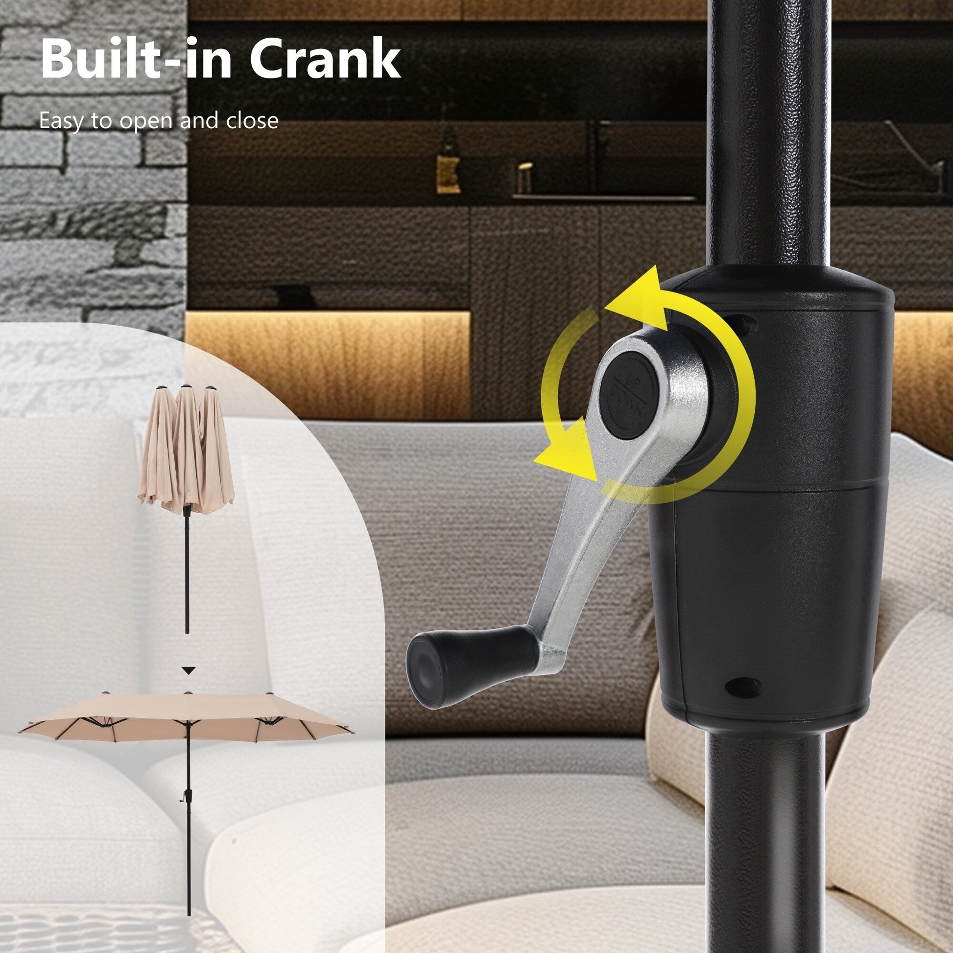 - Parasol double face de 4 m (13 pi) avec toile en polyester 180 g/m² et mât en aluminium de 45 cm (1,5 pi).