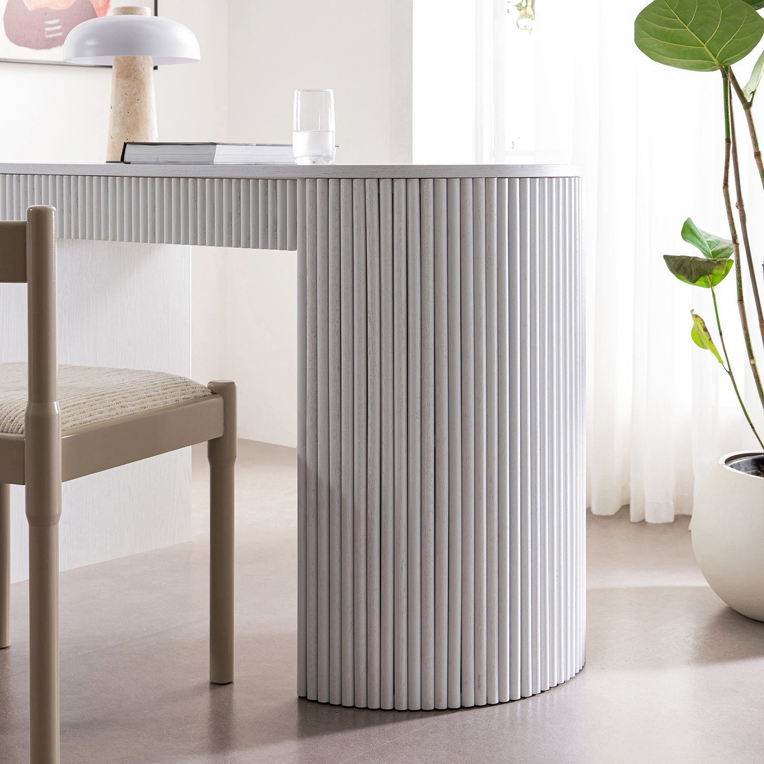 - Avec ses détails cannelés distinctifs et sa silhouette arrondie, ce bureau à un tiroir fait écho à la symétrie nette et à la présence apaisante de la gamme plus large Maru.