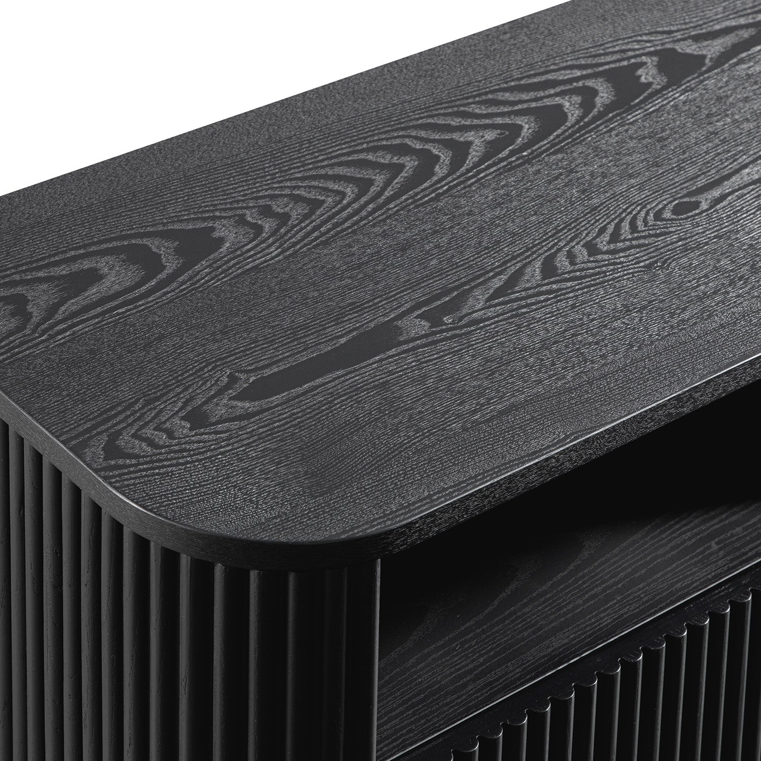 - Défini par ses courbes sculpturales et sa texture cannelée, ce meuble multimédia compact allie un rangement fonctionnel à des lignes architecturales épurées.