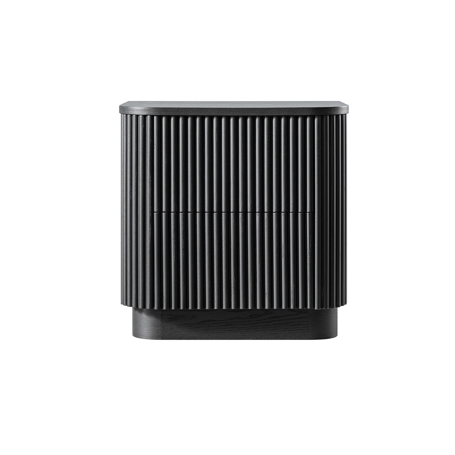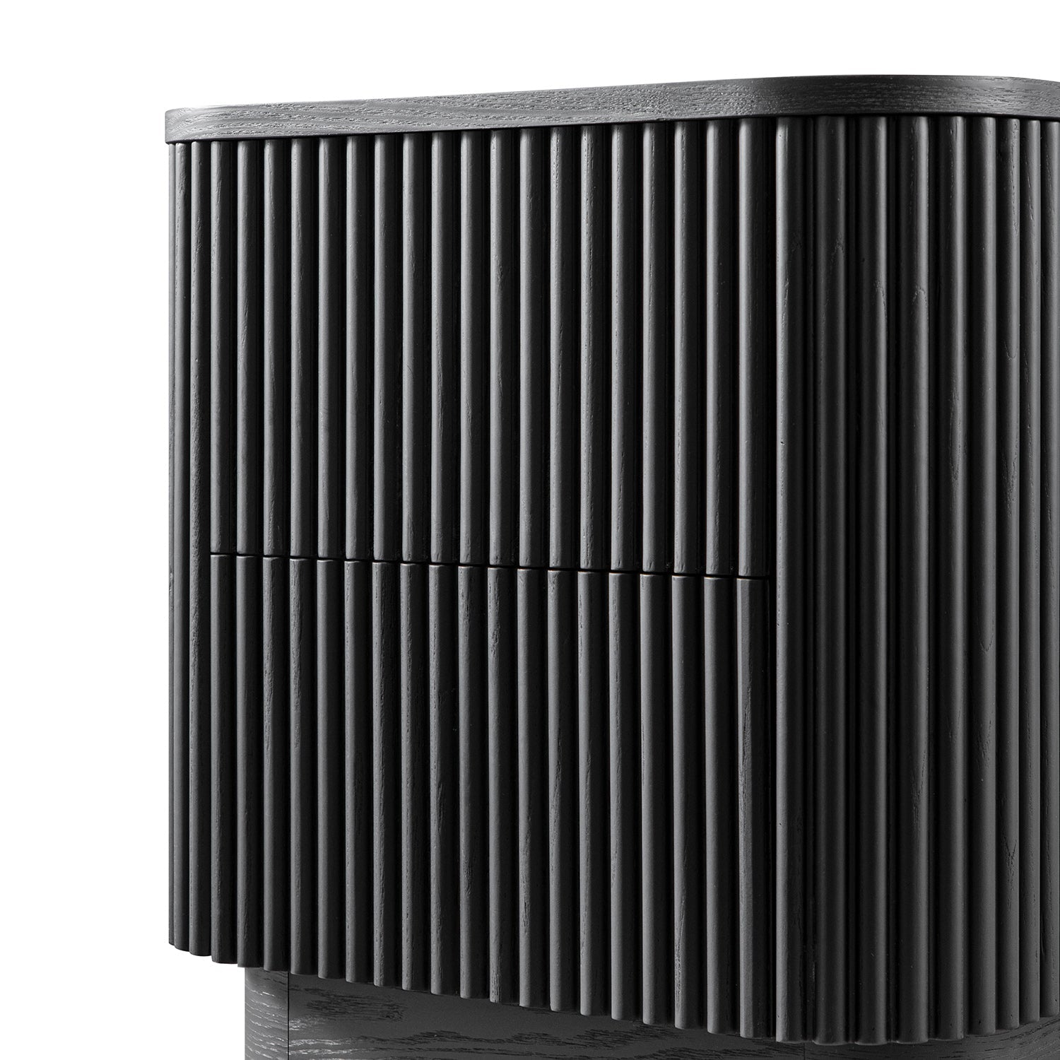 - Sculpturale, maussade et discrètement dramatique, notre table de chevet à 2 tiroirs Maru en noir ajoute une présence frappante mais équilibrée à votre chambre.