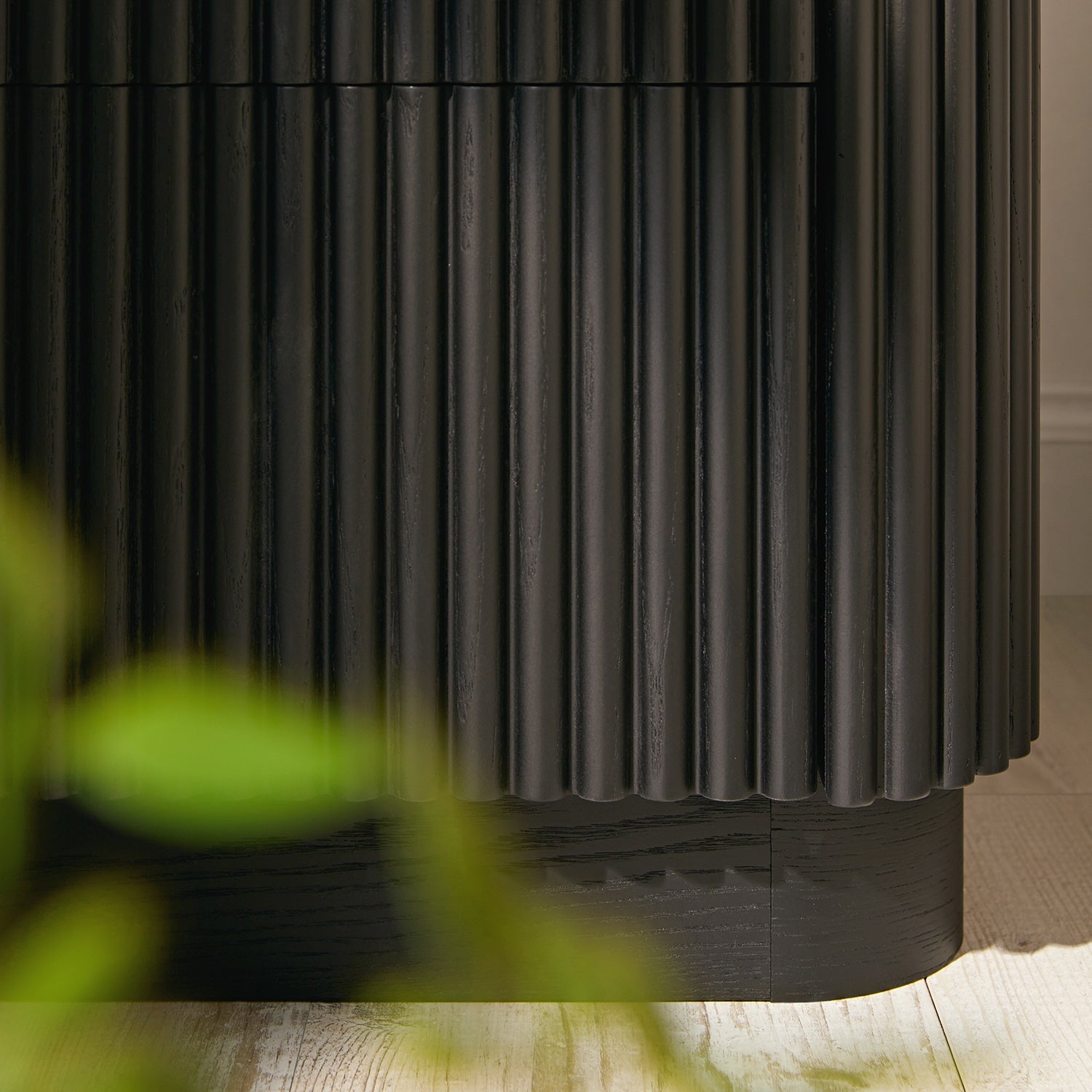 - Les cannelures verticales s'enroulent autour de sa forme légèrement incurvée, créant un rythme d'ombre et de lumière qui joue magnifiquement contre la finition ébène.